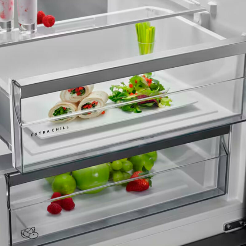 1 Cajón Maxi extraíble y 1 Cajón ExtraChill en el frigorífico - 4 Estantes de los cuales 3 regulables en altura - 4 Balcones en la puerta
