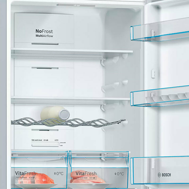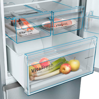 *Cajones VitaFresh: conservan la frescura y vitaminas de tus alimentos durante más tiempo - gracias a sus temperaturas más bajas para carnes y pescados y la óptima humedad para frutas y verduras. *No Frost: descongelación automática - ahorra tiempo y esfuerzo. *2 circuitos de frío independientes: control independiente del frigorífico y del congelador - evita la transferencia de olores. *Iluminación interior mediante LED: uniforme y eficiente, dura toda la vida del electrodoméstico.