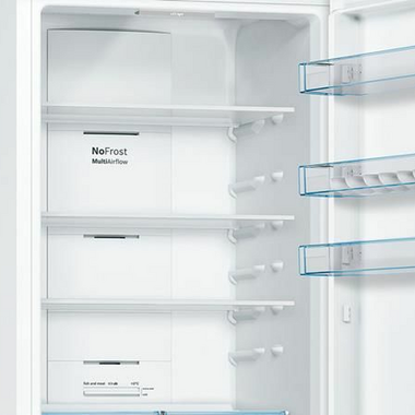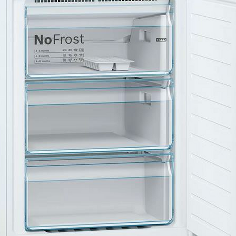 ¡Introduce tu código postal y consulta los servicios disponibles! El frigorífico Combi Bosch KGN39VWDA Blanco garantiza una protección total de los alimentos para que mantengan sus propiedades intactas durante más tiempo. Alimentos siempre frescos El sistema VitaFresh del frigorífico Combi Bosch proporciona las mejores condiciones para prolongar la preservación de los alimentos. Cuenta con diferentes compartimentos: dos cajones superiores que alcanzan una temperatura próxima a 0 ºC, ideales para almacenar carne y pescado; y uno inferior con regulador de humedad destinado a la conservación de frutas y verduras.  Asimismo, el frigorífico KGN39VWDA dispone de la función refrigeración “súper”, que reduce la temperatura del frigorífico durante un corto periodo de tiempo. De esta manera, la nevera estará preparada para enfriar rápidamente los nuevos alimentos que introduzcas y los alimentos ya fríos no aumentarán su temperatura. Acceso sencillo y cómodo Gracias a las bandejas de cristal EasyAccess del frigorífico Bosch KGN39VWDA, que se pueden extraer hasta 15 cm, tendrás una visibilidad completa de los alimentos y recipientes situados sobre ellas. Además, como disponen de unos topes de seguridad antivuelco, los líquidos no se derramarán cuando los saques.  Consumo reducido El compresor con tecnología Inverter del frigorífico Bosch, al trabajar a velocidad variable en función de la necesidad de frío de cada momento, consume solo lo que necesita realmente. De esta manera, se logra un aumento de la eficiencia y una reducción del consumo, así como del nivel de ruido.  Olvídate de la escarcha de una vez por todas gracias a la tecnología noFrost del frigorífico Combi Bosch KGN39VWDA Blanco.