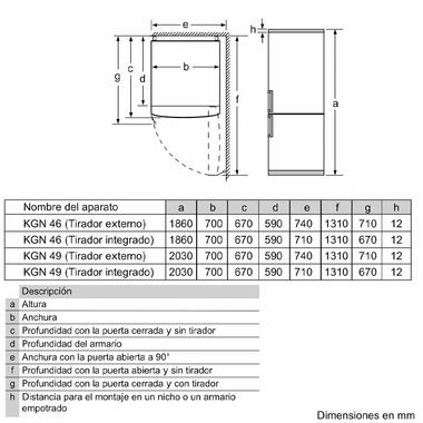 *¡¡XXL:!! combi de mayores dimensiones, proporcionando más espacio y capacidad para la conservación de más y mejor, los alimentos *¡¡Tecnología Inverter:!! mayor rendimiento y menos ruido, con ahorro de energía *¡¡NoFrost:!! no pierdas más tiempo descongelando el frigorífico. La circulación constante de aire seco evita que se acumule escarcha en el frigorífico o el congelador, por lo que no tendrás que descongelarlo *¡¡Más comodidad y ahorro de energía:!! el control electrónico permite ajustar las temperaturas de la zona de refrigeración y congelación de forma independiente, en aquellos frigoríficos con circuitos de frío independientes *¡¡Conserva los alimentos frescos durante más tiempo:!! el control de la humedad y la temperatura ofrece el entorno ideal para conservar frescos los alimentos *¡¡Pon el frigorífico donde quieras:!! Ahorra espacio colocando tu frigorífico Perfect Fit pegado a la pared o a un mueble