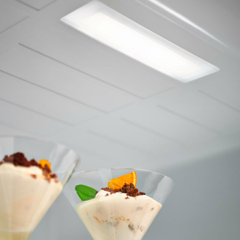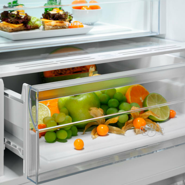 3 Estantes de plástico - 1 Cajón ExtraChill - 1 Cajón para frutas y verduras con regulador de humedad - 3 Balcones en la puerta