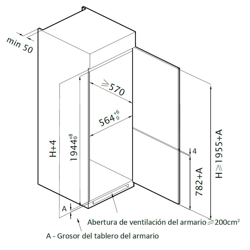 Altura mínima del hueco (mm)