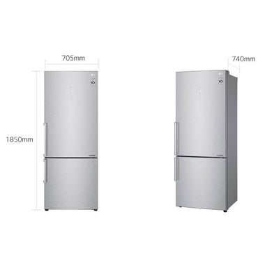 *¡¡App Smart ThinQ:!! Con un teléfono inteligente compatible y la aplicación LG Smart ThinQ™, puedes ajustar la configuración de temperatura de forma remota para mantener una amplia variedad de alimentos en el refrigerador. *¡¡Linear Cooling:!! El compresor lineal inversor LG ayuda a mantener los productos con un aspecto y un sabor frescos por más tiempo al reducir las variaciones de temperatura. *¡¡Door Cooling+:!! Las rejillas de ventilación ubicadas en la parte frontal del refrigerador restablecen la temperatura ideal más rápidamente para mantener los alimentos frescos. *¡¡Cajon Fresh Balancer:!! El FRESH Balancer™, mediante el uso de selectores, permite mantener siempre la humedad óptima para frutas y verduras en función del modo configurado. *¡¡Compresor Linear Inverter:!! Gracias a la avanzada tecnología LG, el compresor lineal Inverter es más silencioso que el compresor tradicional. Con 10 años de garantía en el compresor. *¡¡Máxima practicidad:!! Este elegante refrigerador combinado cuenta con un estante plegable de dos niveles, ideal para acomodar botellas altas, y un compartimento más fresco que ayuda a reducir la congelación y descongelación de ciertos alimentos. *¡¡Estante plegable:!! El estante plegable de 2 niveles le permite colocar alimentos de cualquier tamaño y crear espacio para recipientes altos y voluminosos. *¡¡Cajón Big Zone:!! es un compartimento integrado que mantiene una temperatura más baja que otras áreas del refrigerador, reduciendo así la necesidad de congelar y descongelar ciertos alimentos. *¡¡Diseño impecable:!! Este nuevo y elegante frigorífico combinado tiene un ancho de 705 mm y gracias a su sofisticado diseño se integra perfectamente en cualquier cocina.
