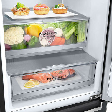 *¡¡Servicio premium gratuito:!! Incluye Puesta en marcha: Conexión a la toma de agua e instalación del filtro y Nivelación del frigorífico. Desmontaje y montaje de puertas y/o Vinculación del producto a la red WIFI. *{¡¡20 años de garantía en el compresor:!!} El compresor Inverter Linear Compressor de LG está formado por menos componentes por lo que produce menos ruido que un compresor convencional. Además, ahorra más energía y proporciona mayor durabilidad. *¡¡Nature Fresh:!! El sistema NatureFRESH™ controla de forma precisa la temperatura de tu frigorífico para conservar los alimentos frescos durante más tiempo. Cuenta con 9 salidas de aire junto a cada balda. *¡Door Cooling+:!! La salida de aire en la parte superior frontal del frigorífico en forma de cascada permite enfriar bebidas y alimentos más rápido y reduce la diferencia de temperatura entre el interior y la puerta del frigorífico. *¡¡Fresh balancer:!! Regula y mantiene la humedad óptima de frutas y verduras un 20% más frescas pasados 7 días. *¡¡Fresh Converter:!! Cajón multitemperatura “especial cervezas”: adapta la temperatura del cajón (entre -2ºC y 3ºC) a cada tipo de alimento: cerveza, verduras, carne o pescado. *¡¡Comodidad y usabilidad:!! ‘El botellero y la balda completamente plegable facilitan el almacenamiento de los alimentos adaptándose a tus necesidades. *¡¡Balda plegable:!! La balda completamente plegable te permite colocar alimentos de cualquier tamaño y crea el espacio necesario para recipientes altos y voluminosos como ollas y botellas. *¡¡Diseño Premium y resistente:!! El nuevo frigorífico combi es el epítome del refinamiento tanto en función como en estilo. Tiene un diseño minimalista que maximiza la elegancia y la comodidad. Ahora, disfruta de la practicidad y el lujo en tu propia cocina”