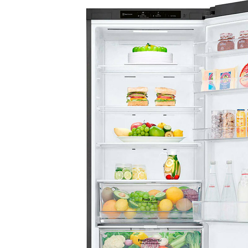 *¡¡NatureFRESH™!! Deleita a tus sentidos con NatureFRESH™ El sistema NatureFRESH™ controla de forma precisa la temperatura de tu frigorífico para conservar los alimentos frescos durante más tiempo. Cuenta con 9 salidas de aire junto a cada balda. *¡¡DoorCooling+™!! Enfría hasta un 32% más rápido. La salida de aire en la parte superior frontal del frigorífico en forma de cascada permite enfriar bebidas y alimentos más rápido y reduce la diferencia de temperatura entre el interior y la puerta del frigorífico. *¡¡FRESHConverter™!! Adapta la temperatura. Cajón multitemperatura “especial cervezas”: adapta la temperatura del cajón (entre -2ºC y 3ºC) a cada tipo de alimento: cerveza, verduras, carne o pescado. *¡¡Inverter Linear Compressor!! 10 años de garantía. El compresor Inverter Linear Compressor de LG está formado por menos componentes por lo que produce menos ruido que un compresor convencional. Además, ahorra más energía y proporciona mayor durabilidad. *¡¡Sistema de autodiagnóstico:!! acerca tu teléfono móvil al frigorífico y éste transmitirá la incidencia al servicio técnico, ahorrándote tiempo y dinero.