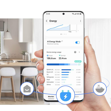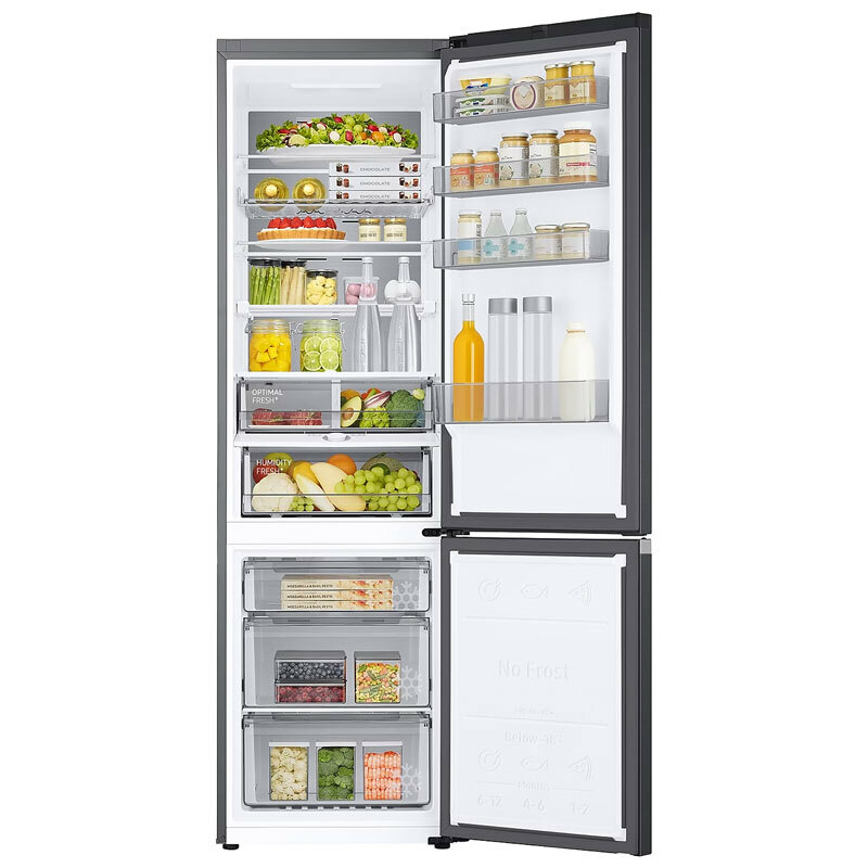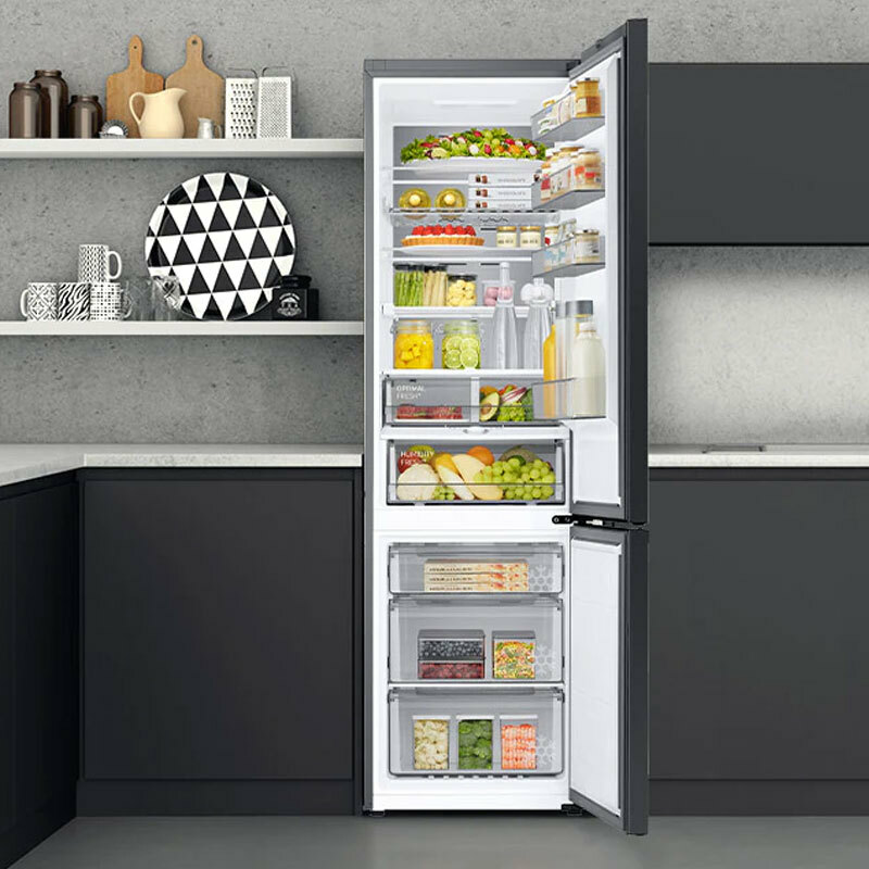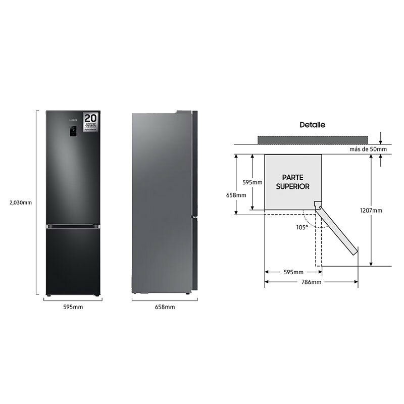 *¡¡Modo IA Energy & SmartThings:!! Ahorra hasta un 30% de energía gracias a la Inteligencia Artificial. Controla el consumo de energía, ahorra dinero y recibe consejos útiles. Toma el control de tu consumo energético, reduce tu huella de carbono y ahorra dinero. SmartThings Energy te da consejos para ahorrar energía y monitoriza el consumo de tus electrodomésticos en tiempo real para compararlo con el del mes anterior. También te avisa si tus objetivos mensuales se exceden. *¡¡SmartThings Home care:!! Cuidar tu frigorífico nunca fue tan fácil. SmartThings Home Care te ofrece la posibilidad de monitorizarlo en tiempo real y recibir alertas: podrás comprobar cómo está funcionando o el estado del filtro de agua. También te notificará automáticamente si alguna pieza necesita reponerse o si detecta problemas, te sugiere una solución. *¡¡SmartThings Cookling:!! Gestiona, compra y prepara tus alimentos con más eficiencia. SmartThings Cooking te permite crear una lista de los alimentos que hay en tu frigorífico y controlar las fechas de caducidad para que sepas en todo momento y lugar qué tienes y qué te falta. También te hace recomendaciones personalizadas *¡¡Ahorra al máximo gastando lo justo:!! Un producto eficiente es aquel que te ayuda a consumir la energía que realmente necesitas, reduciendo el consumo energético y ayudando al planeta. Gasta menos en la factura de la luz con nuestros electrodomésticos más eficientes. *¡¡Compresor inverter 20 años de garantía:!! Ajusta automáticamente la temperatura y humedad entre 7 niveles según tus necesidades, lo que supone un ahorro energético y, además, cuenta con 20 años de garantía. *¡¡Spacemax:!! Más espacio interior manteniendo el mismo tamaño exterior. Samsung ha reducido el grosor de las paredes maximizando la capacidad interior alcanzando hasta 390 litros de capacidad. *¡¡Metal Cooling:!! Placa metálica en el interior del frigorífico que reduce la dispersión del frío, ayudando a conservar y restaurar la temperatura original, independientemente de cuántas veces abras y cierres la puerta. *¡¡All Aroung Cooling:!! Tus alimentos se enfriarán correctamente estén donde estén situados en el frigorífico. All-Around Cooling consigue que la temperatura se mantenga constante en cada balda. Esta tecnología comprueba constantemente la temperatura y hace que circule aire frío a través de las múltiples ranuras dispuestas*¡¡Optimal Fresh+:!! Disfruta de la libertad de almacenamiento. El cajón Optimal Fresh+ puede usarse como un solo cajón o separarse en dos zonas con diferentes temperaturas. El lado izquierdo está más frío, por lo que la carne y el pescado pueden mantenerse frescos el doble de tiempo *¡¡Humidity Fresh+:!! Preserva la textura y el sabor original de la comida perecedera durante más tiempo. En este cajón puedes ajustar la humedad simplemente girando el control. Consigue el ambiente ideal para almacenar diferentes frutas y verduras para que se mantengan frescas y jugosas. *¡¡Power Cool y Power Freeze:!! Con solo tocar un botón, la función Power Cool expulsa aire frío intensamente dentro del frigorífico para enfriar rápidamente tus alimentos o tus bebidas favoritas. Power Freeze envía una ráfaga de aire frío al congelador. Es ideal para congelar alimentos rápidamente o hacer hielo. *¡¡No frost:!! Olvídate de perder tiempo y energía descongelando el frigorífico. La tecnología No Frost mejora la circulación de aire para mantener una temperatura constante que previene la formación de hielo. También ayuda a alcanzar la temperatura óptima mucho más rápido y es menos exigente con el sistema de enfriamiento, alargando así su vida. *¡¡Flexibilidad de almacenamiento:!! Guarda botellas más grandes en la puerta para no desperdiciar espacio en los estantes gracias a uno más grande que te ayuda a almacenar de forma segura. Es genial si quieres acceder fácilmente a tus bebidas favoritas en cualquier momento. *¡¡Puerta compacta, apertura 90º junto a la pared:!! Coloca tu frigorífico donde quieras sin que las paredes se interpongan en tus planes. Su puerta compacta con diseño a ras te permite abrirla hasta 90° sin que la pared choque con la pared. Así, puedes colocar el frigorífico donde quieras y la puerta siempre se abrirá por completo. *¡¡Diseño integrado y elegante:!! Dale a tu casa un toque elegante. Su profundidad estándar de 600mm se alineará completamente con tus armarios. Cuenta con unas puertas lisas y una parte trasera limpia. El interior tiene baldas tintadas en gris, un display oculto y un estante plano para vinos y cajas *¡¡Trasera de metal:!! Limpia la parte trasera de tu frigorífico de forma mucho más sencilla. Tiene una cubierta de seguridad completamente lisa para esconder las bobinas y cables. Da un aspecto ordenado, se limpia fácilmente y proporciona una mayor durabilidad. Evita que la suciedad se acumule alrededor de los componente