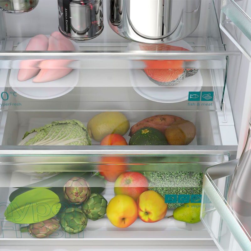 ["Cajón Hyperfresh para frutas y verduras - Cajón HyperFresh 0ºC para carnes y pescados - 3 Estantes","2 regulables en altura - Botellero - 3 Balcones en la puerta"]