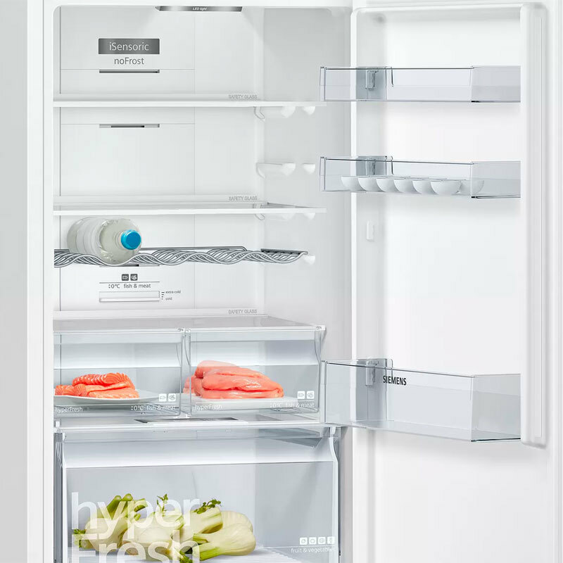 ["Iluminación interior mediante LED con softStart","Bandejas de cristal EasyAccess con tope de seguridad en el refrigerador","Botellero cromado de gran capacidad","1 balcón grande","2 balcones pequeños","1 cajón hyperFresh con control de humedad - Conserva frutas y verduras frescas hasta el doble de tiempo.","2 cajones hyperFresh plus 0°C para carnes y pescados. Conserva carnes y pescados hasta el doble de tiempo"]