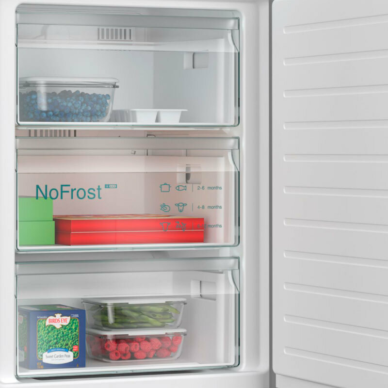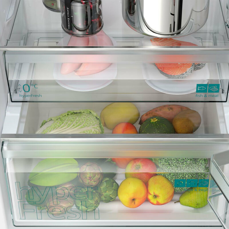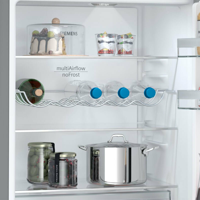 *¡¡Más espacio y mejor conservación:!! Sistema hyperFresh <0°>. Obtén el espacio que necesitas para guardar grandes cantidades de frutas y verduras.Además, hay un compartimento especial para la carne y el pescado que tiene su propio suministro de aire frío, de modo que aguantan en perfectas condiciones durante más tiempo.Más espacio y mejor organización en tu frigorífico. *¡¡noFrost:!! Mantén tu congelador sin escarcha. Un congelador sin escarcha conserva mejor los alimentos congelados y ahorra energía.La tecnología noFrost extrae la humedad y mantiene seco el aire del interior.Eso evita la formación de hielo en las paredes interiores o los alimentos, por lo que no es necesario descongelar el congelador.También ahorra energía, porque la ausencia de escarcha mejora la eficiencia del congelador. *¡¡Pared trasera satinada con sistema multiAirflow:!! Todas las zonas del frigorífico enfrían igual. Para que los alimentos se conserven frescos, es necesario que todo el frigorífico enfríe igual. La pared posterior satinada con multiAirflow hace que el aire circule de manera uniforme para mantener una temperatura constante en todas las zonas. Los alimentos que acabas de meter en la nevera se enfrían rápidamente y la temperatura estable preserva su frescura. *¡¡Super-refrigeración:!! Enfría rápido, conserva mejor. Enfriar rápidamente los alimentos frescos es la mejor garantía para conservar su frescura y sabor. La función de super-refrigeración está pensada precisamente para eso. Con solo tocar un botón, reduce la temperatura para enfriar rápidamente los productos frescos que metas en el frigorífico. De esta forma, mantienen todas sus propiedades hasta que los necesites para cocinar. También puedes activar la función de super-refrigeración a distancia si tienes un frigorífico conectado mediante la aplicación Home Connect. Por ejemplo, cuando estás volviendo de la compra y vas a introducir nuevos alimentos en el frigorífico.