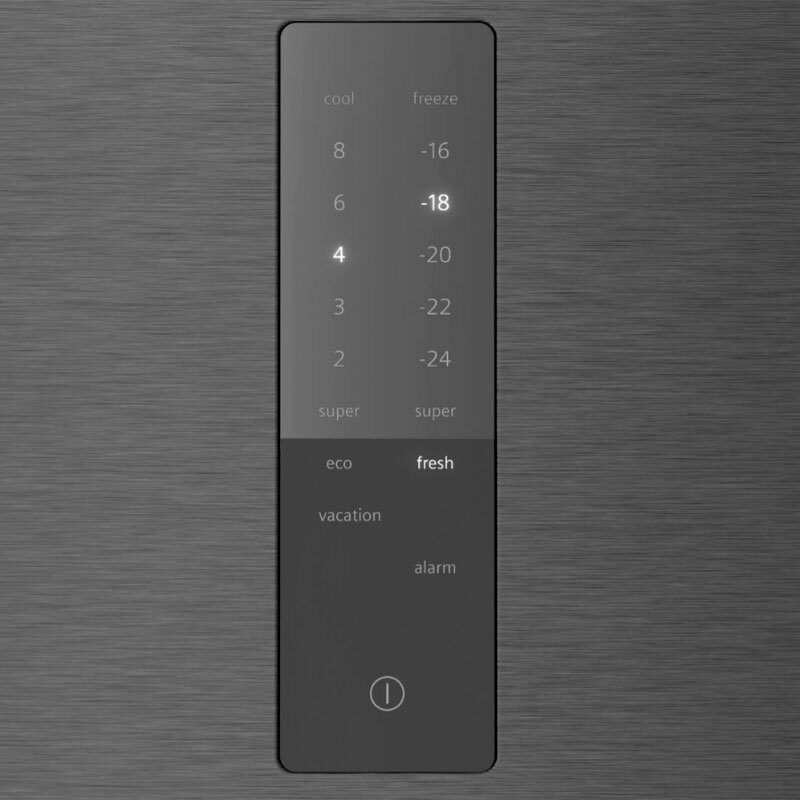 ["1 Cajón hyperFresh con regulador de humedad para frutas y verduras - 1 Cajón hyperFresh 0°C para carnes y pescados - Bandejas de cristal EasyAccess con topes de seguridad - Botellero cromado de gran capacidad - 3 estantes de los cuales 2 regulables - 1 balcón grande","2 balcones pequeños"]