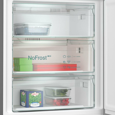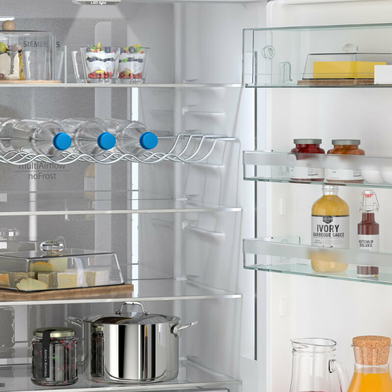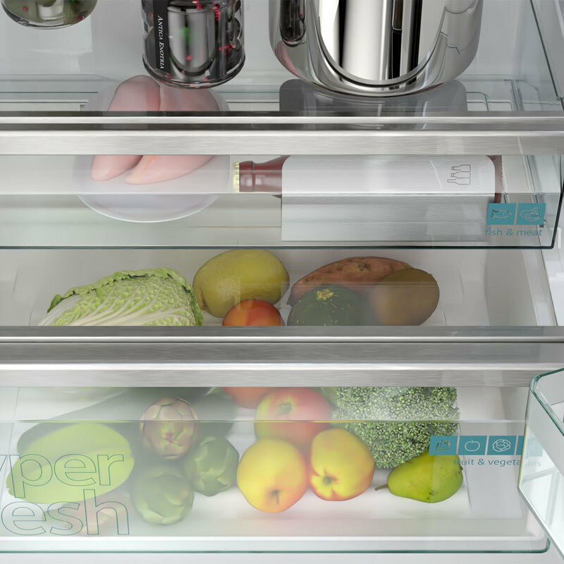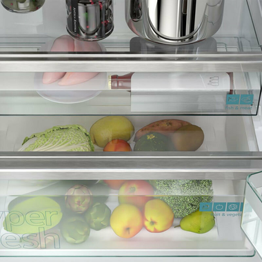*Cajón hyperFresh con regulador de humedad para frutas y verduras *Cajón hyperFresh 0°C para carnes y pescados *Bandejas de cristal EasyAccess con topes de seguridad antivuelco *Mantequillera *1 balcón grande, 2 balcones pequeños