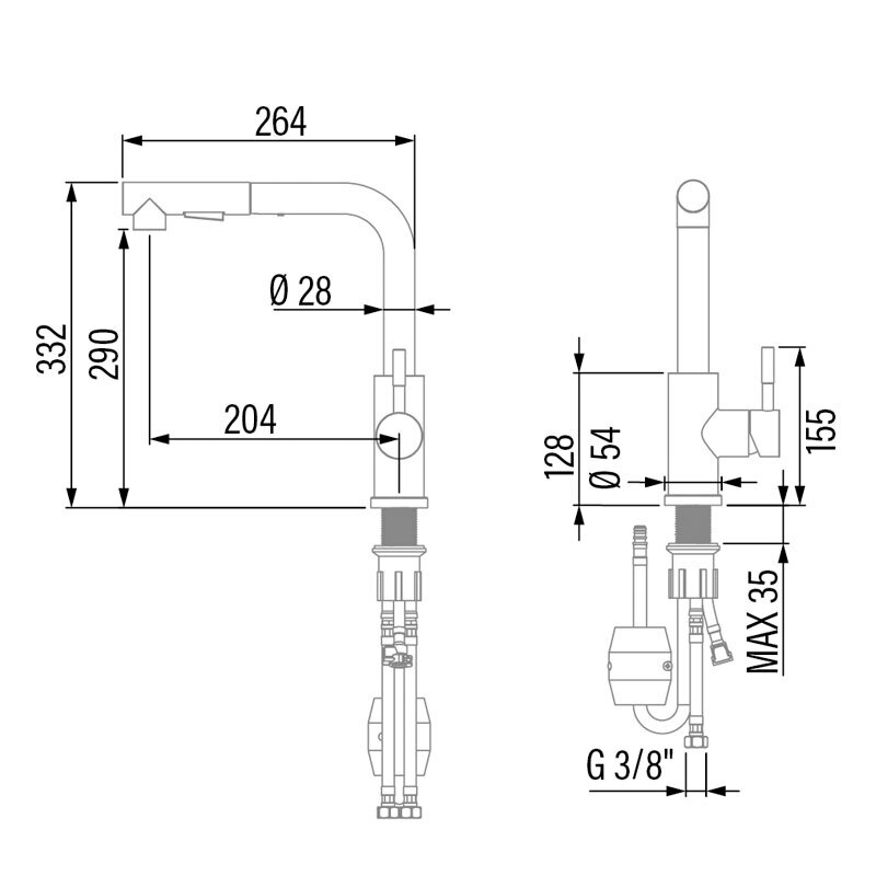 Boquilla extraíble Acero inoxidable 304 Boquilla giratoria 360º Boquilla de aire