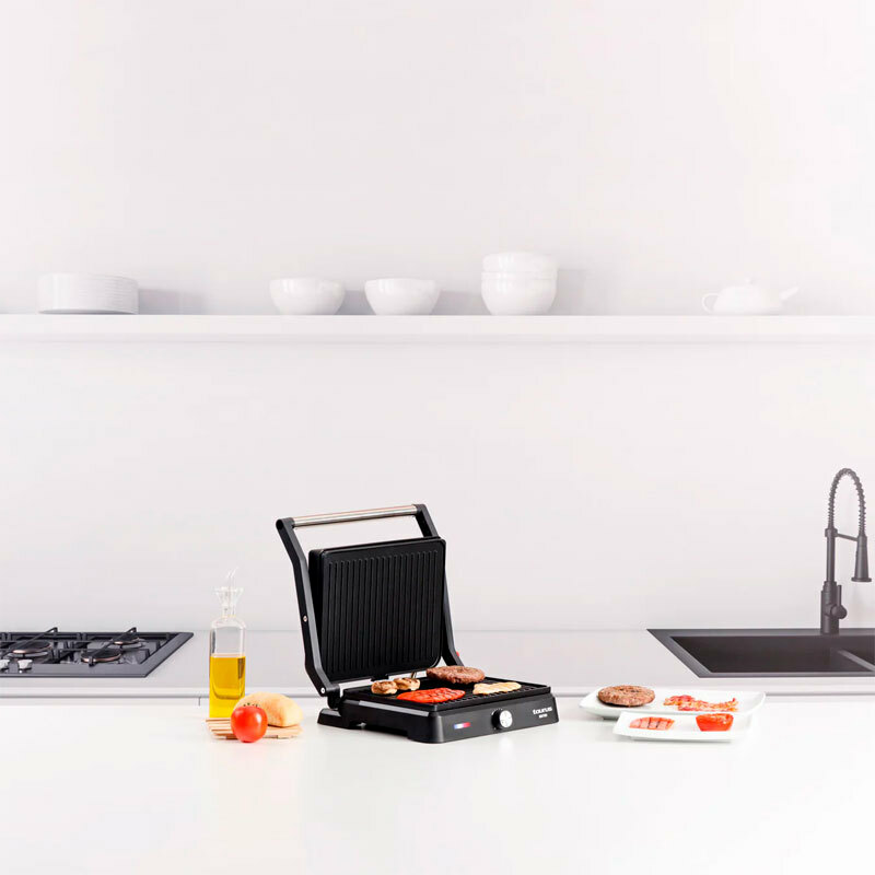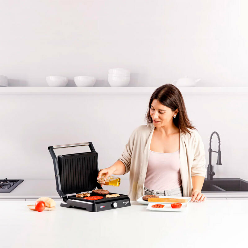 *El grill Bistro 2 en 1 de Taurus combina 2600W de potencia, unas amplias placas de 29x23 cm y revestimiento antiadherente libre de PFOA. Su placa superior basculante y apertura de 180º garantizan flexibilidad y resultados uniformes. Incluye termostato regulable, bandeja recoge grasas extraíble y asa de toque frío para mayor comodidad. Perfecto para asar carnes, verduras y tostar sándwiches con facilidad, es ideal para quienes buscan potencia y versatilidad en la cocina. *¡¡2 en 1: Grill y plancha de asar:!! Este potente grill de 2600W combina la funcionalidad de un grill y una plancha de asar, perfecto para cocinar carnes, pescados, verduras y más con resultados deliciosos. *¡¡Amplias placas de cocción de 29x23 cm con revestimiento antiadherente:!! Las grandes placas de cocción ofrecen espacio suficiente para preparar alimentos de manera eficiente, mientras su revestimiento antiadherente facilita la limpieza. *¡¡Placa superior basculante y apertura de 180º:!! Su placa superior ajustable al grosor de los alimentos y la apertura de 180º permiten asar y tostar con flexibilidad y uniformidad. *¡¡Termostato regulable para una cocción precisa:!! Ajusta la temperatura según tus necesidades para cocinar a la perfección una gran variedad de alimentos, desde sándwiches hasta cortes de carne gruesos. *¡¡Diseño práctico con bandeja recoge grasas y asa de toque frío:!! Incluye una bandeja recoge grasas extraíble para una limpieza sencilla y un asa de toque frío que garantiza seguridad durante el uso.