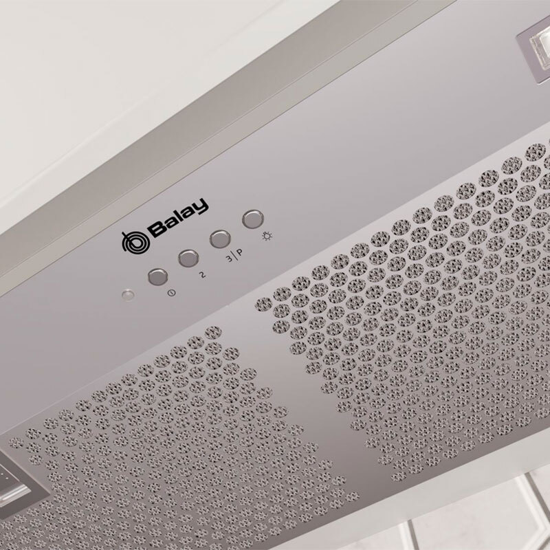 Iluminación LED: cuando sepas lo que ahorran, lo verás todo más claro. Con la iluminación LED no solo verás mejor y durante más tiempo. También es con diferencia la más eficiente, es decir, que reduce considerablemente el consumo eléctrico frente a los sistemas halógenos. Y todo esto sin perder ni un ápice de calidad en la iluminación. ¿Cómo lo ves? - Con esta capacidad de extracción no importa lo que estés cocinando Seguro que el aroma de tus recetas es irresistible, pero a la hora de cocinar es mucho más cómodo que el espacio esté libre de humos, olores y vapor. Y esto se consigue con una campana como esta, con un motor potente y eficaz, que te asegure una gran potencia de extracción. - Instalación en recirculación: la solución cuando tu cocina no tiene salida de humos. Si tu cocina no tiene salida de humos o la que hay no es adecuada, no te preocupes: todas las campanas Balay pueden instalarse en recirculación. Solo necesitas un filtro especial y listo. La campana extrae el humo y el vapor que se producen mientras cocinas y devuelve a la estancia el aire totalmente limpio de grasa y olores. Además, es un sistema muy eficiente ya que no se desperdicia el calor de la calefacción ni el aire acondicionado. - Filtros de acero inoxidable diseñados para embellecer tu cocina. Estos filtros son realmente estéticos y han sido diseñados para embellecer tu cocina. Pero sabemos que la imagen no lo es todo, por eso también hemos pensado en tu comodidad, y podrás limpiarlos muy fácilmente tanto a mano como en el lavavajillas.