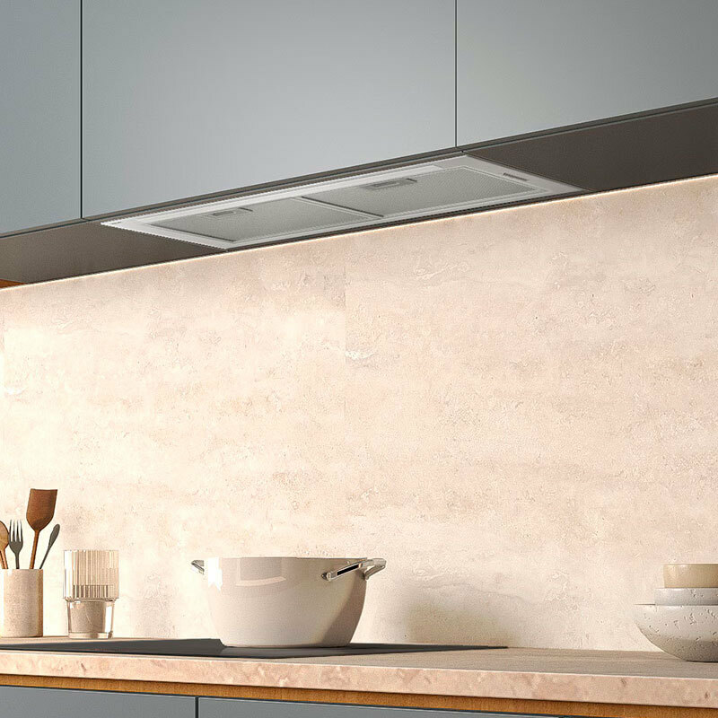 Gran poder de ventilación: 625 metros cúbicos de capacidad de succión por hora para ventilar el aire en un instante. - Filtro lavable: Filtro de aluminio duradero y de fácil mantenimiento. Podrás lavarlo en el lavavajillas. - Iluminación LED: La iluminación LED consume menos energía y es más duradera que las bombillas tradicionales. Además de distribuir la luz de una forma homogénea. - Diseño Integrado: Su diseño elegante y oculto tiene un per?l en acero inoxidable que armonizará bien con los muebles de tu cocina y otros electrodomésticos