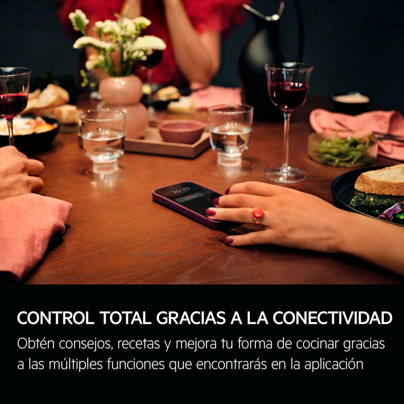 *Cocinado siempre de manera uniforme. Ahorra tiempo y energía El horno SurroundCook® 5000 deja circular el aire de manera más eficaz para que la comida se cocine de manera uniforme en cualquier parte del horno. Utiliza tres bandejas para cocinar con resultados perfectos, ahorrando hasta un 20 % de tiempo y energía en el proceso. *Cocina multinivel. Calor uniforme en todo el horno: La cocina multinivel con su aro de calentamiento adicional te permite calentar tus platos de manera uniforme y homogénea con hasta tres bandejas de horno llenas. *EXPlore. Fácil acceso a las funciones del horno: EXPlore te permite controlar los ajustes de tu horno de manera sencilla para saber lo que ocurre con la cocción. Con la pantalla LED, 5 botones táctiles y dos mandos giratorios, puedes ver fácilmente la hora, la temperatura y el progreso de tu plato. *Conéctate. Y cambia tu manera de cocinar: La conectividad te permite controlar el horno desde cualquier lugar con tu aplicación. Obtén consejos y mejora la técnicas de cocina con funciones al alcance de tu mano en la aplicación. *Limpieza pirolítica. La función de autolimpieza Con altas temperaturas, la función de limpieza pirolítica convierte la grasa y los residuos de comida en ceniza, para que puedas limpiar el horno fácilmente con un paño húmedo.