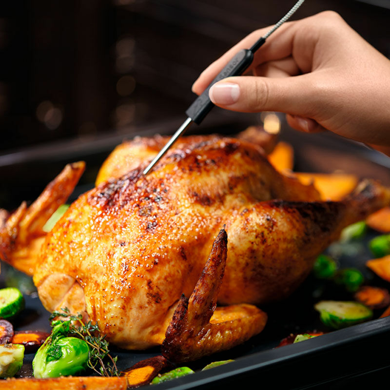 *SenseCook: En los hornos SenseCook® con asistente de cocción la sonda controla la temperatura interior de los alimentos y te permite elegir tu punto de cocción preferido, incluso desconectando el horno cuando los alimentos están listos. La pechuga de pato perfecta, siempre. *Cocción asistida: Como tener un chef personal a tu servicio. Tu seleccionas el alimento que vas a preparar y el horno sugiere y ajusta el programa y duración más adecuados, con un precalentamiento más rápido del horno. También puedes guardar tus ajustes personalizados según tu propio gusto. *Sonda térmica: Este horno puede medir la temperatura interna de cualquier pieza de carne o pescado durante el proceso de cocción, para que puedas disfrutar siempre de resultados impecables. Cuando el alimento alcanza la temperatura programada, el horno se apaga automáticamente.