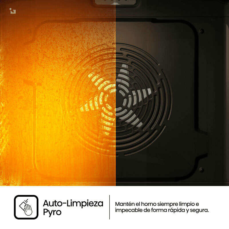 Guía Telescópica: Las guías telescópicas permiten introducir y extraer con mucha facilidad las bandejas y parrillas que tenemos dentro del horno. Cierre Suave: Cierra la puerta del horno con casi nada de esfuerzo y ruido. Un toque suave es todo lo que se necesita para que esta puerta se cierre completamente sin hacer ningún sonido. Auto-Limpieza Pirolítica: Mantén el horno siempre limpio e impecable de forma rápida y segura. Convierte la grasa y restos de alimentos en cenizas que se pueden retirar fácilmente con un paño húmedo. Even Bake: Forma innovadora inspirada en los hornos tradicionales. Los alimentos se hornean de manera uniforme, sin puntos quemados o poco hechos y con excelentes resultados de cocción. Gran Capacidad 77L y Cocción Simultánea x5: Una combinación de tecnología multiflow, la gran capacidad de 77L y su cavidad redondeada permite que el horno logre uno de los objetivos más difíciles, preparar varias bandejas a la vez. Calentamiento Rápido: El horno alcanza una temperatura de hasta 200?C en tan solo 5 minutos, un 30% más rápido que el precalentamiento tradicional y además avisa con una señal acústica y visual. Modo Air Fry: Podemos preparar todos nuestros alimentos fritos favoritos empleando muy poco o incluso nada de aceite, siendo una alternativa más saludable a las freidoras tradicionales. Modo Grill: Emplea una combinación de dos resistencias de distintos tamaños, una más grande y otra más pequeña, que contribuyen a distribuir óptimamente el calor. De esta manera se consigue un dorado perfecto y sin quemar con una cobertura de más del 90%. Modo Pizza: Utiliza una temperatura muy alta, de 300°C, que permite hornear más rápido pero consiguiendo al mismo tiempo una corteza perfecta, como en las pizzas tradicionales preparada en horno de piedra. Puerta Extraíble: Nuestro sistema patentado permite retirar de manera sencilla y rápida el cristal interior de la puerta para facilitar la limpieza y mantenimiento. ¡Eficiente y practico!