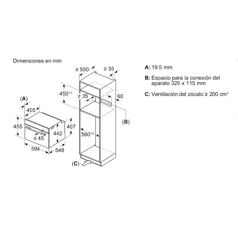 *¡¡Asistente del horno con control por voz:!! ¿No sabes qué programa elegir para una receta? Simplemente, dile a tu horno qué plato quieres preparar mediante el control por voz de Amazon Alexa. También puedes hacerlo con la aplicación Home Connect. El asistente del horno te sugerirá los ajustes o programas adecuados y los activará automáticamente, ahorrándote tiempo y esfuerzo. Para disfrutar del asistente del horno, solo tienes que vincular el horno a tu cuenta de Home Connect. *¡¡Home connect con control remoto:!! ¿Quieres descubrir una nueva forma de controlar tu horno? Solo tienes que vincular el horno a tu cuenta de Home Connect (www.home-connect.com) para controlarlo a distancia y usar servicios digitales, incluso mediante la voz, con Amazon Alexa. Puedes iniciar y finalizar los programas de cocción, cambiar los ajustes y gestionar tus favoritos sin pisar la cocina. Los ajustes se sincronizan entre la aplicación y el horno, y recibirás una notificación cuando termine la cocción. También puedes mantener actualizado el horno con las descargas de software. Descubre una forma más cómoda de cocinar. *¡¡perfectCooking4D:!! Consigue resultados de cocción uniformes en cualquier parte del horno con perfectCooking 4D. Un innovador ventilador distribuye el calor de forma rápida y uniforme por el interior. Coloca las bandejas en cualquiera de las cuatro alturas y todos los platos quedarán perfectos. ¡Incluso puedes cocinar un menú de varios platos a la vez! *¡¡Bailes telescópicos:!! Con los rieles telescópicos, las bandejas y las rejillas se pueden sacar del horno fácilmente, los rieles los mantienen en su posición de forma segura. *¡¡Precalentamiento rapido y coolstart:!! Descubre dos funciones inteligentes para ahorrar tiempo en la cocina. El precalentamiento rápido consigue que el horno alcance la temperatura deseada en un momento. Y con coolStart puedes cocinar los alimentos sin descongelarlos antes. ¡Tus platos estarán listos para servir más rápido que nunca! *¡¡Un mundo de recetas:!! No pierdas más el tiempo con libros de cocina o buscando recetas de Internet. Ahora puedes acceder a un mundo de deliciosas recetas con Home Connect y nuestras aplicaciones colaboradoras, como Foodfittery. Elige una receta y envía los ajustes a tu horno. Podrás preparar platos deliciosos, justo como a ti te gusta. Para disfrutar de esta función, solo tienes que vincular el horno a tu cuenta de Home Connect. *¡¡Asistencia en linea:!! ¿Tienes alguna duda sobre tu nuevo horno? Gracias a la aplicación Home Connect, podrás resolver cualquier duda de la forma más rápida y sencilla. Tienes acceso a un manual de usuario interactivo en el que encontrarás respuestas, consejos y trucos para sacar el máximo partido a tu horno. Si surge cualquier problema con el horno, utiliza el servicio de diagnóstico remoto para identificar la causa. Con tu permiso, el servicio de Atención al Cliente de Siemens accederá a distancia al aparato para localizar el problema y solucionarlo. Para disfrutar de todas estas ventajas, solo tienes que vincular el horno a tu cuenta de Home Connect. *¡¡softMove:!! El mecanismo de amortiguación asegura que la puerta del horno se abra y cierre suavemente.