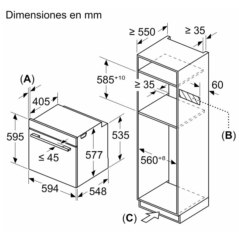 *¡¡Asistente del horno con control por voz:!! ¿No sabes qué programa elegir para una receta? Simplemente, dile a tu horno qué plato quieres preparar mediante el control por voz de Amazon Alexa. También puedes hacerlo con la aplicación Home Connect. El asistente del horno te sugerirá los ajustes o programas adecuados y los activará automáticamente, ahorrándote tiempo y esfuerzo. Para disfrutar del asistente del horno, solo tienes que vincular el horno a tu cuenta de Home Connect. *¡¡Home Connect con control remoto:!! ¿Quieres descubrir una nueva forma de controlar tu horno? Solo tienes que vincular el horno a tu cuenta de Home Connect (www.home-connect.com) para controlarlo a distancia y usar servicios digitales, incluso mediante la voz, con Amazon Alexa. Puedes iniciar y finalizar los programas de cocción, cambiar los ajustes y gestionar tus favoritos sin pisar la cocina. Los ajustes se sincronizan entre la aplicación y el horno, y recibirás una notificación cuando termine la cocción. También puedes mantener actualizado el horno con las descargas de software. Descubre una forma más cómoda de cocinar. *¡¡perfectcooking4D:!! Consigue resultados de cocción uniformes en cualquier parte del horno con perfectCooking 4D. Un innovador ventilador distribuye el calor de forma rápida y uniforme por el interior. Coloca las bandejas en cualquiera de las cuatro alturas y todos los platos quedarán perfectos. ¡Incluso puedes cocinar un menú de varios platos a la vez! *¡¡Precalentamiento rapido y coolstart:!! Descubre dos funciones inteligentes para ahorrar tiempo en la cocina. El precalentamiento rápido consigue que el horno alcance la temperatura deseada en un momento. Y con coolStart puedes cocinar los alimentos sin descongelarlos antes. ¡Tus platos estarán listos para servir más rápido que nunca! *¡¡Un mundo de recetas:!! No pierdas más el tiempo con libros de cocina o buscando recetas de Internet. Ahora puedes acceder a un mundo de deliciosas recetas con Home Connect y nuestras aplicaciones colaboradoras, como Foodfittery. Elige una receta y envía los ajustes a tu horno. Podrás preparar platos deliciosos, justo como a ti te gusta. Para disfrutar de esta función, solo tienes que vincular el horno a tu cuenta de Home Connect. *¡¡Autolimpieza pirolitica:!! Se acabó frotar para quitar la suciedad del horno. Gracias a la Autolimpieza pirolítica, tu horno se limpia solo. Solo tienes que retirar los restos con un paño. Basta con pulsar un botón para que todos los restos de suciedad del horno se conviertan en cenizas. Luego simplemente debes retirar los restos con un paño húmedo. *¡¡Asistente en linea:!! ¿Tienes alguna duda sobre tu nuevo horno? Gracias a la aplicación Home Connect, podrás resolver cualquier duda de la forma más rápida y sencilla. Tienes acceso a un manual de usuario interactivo en el que encontrarás respuestas, consejos y trucos para sacar el máximo partido a tu horno. Si surge cualquier problema con el horno, utiliza el servicio de diagnóstico remoto para identificar la causa. Con tu permiso, el servicio de Atención al Cliente de Siemens accederá a distancia al aparato para localizar el problema y solucionarlo. Para disfrutar de todas estas ventajas, solo tienes que vincular el horno a tu cuenta de Home Connect. *¡¡softmove:!! El mecanismo de amortiguación asegura que la puerta del horno se abra y cierre suavemente. *¡¡varioSpeed:!! Gana más tiempo para dar rienda suelta a tu creatividad en la cocina. La función varioSpeed combina de forma inteligente el calor convencional y las microondas para reducir el tiempo de cocción hasta un 50 % sin que afecte a la calidad ni los sabores de los alimentos. Cocina recetas magníficas en la mitad de tiempo. *¡¡Display TFt Touch Plus:!! Los hornos con Display TFT touch Plus permiten un control más fácil e intuitivo gracias a los menús claros, la navegación táctil y la gran pantalla en color de alto contraste. La pantalla te guía de manera intuitiva a través del extenso menú, ayudándote a sacar el máximo partido a tu horno.