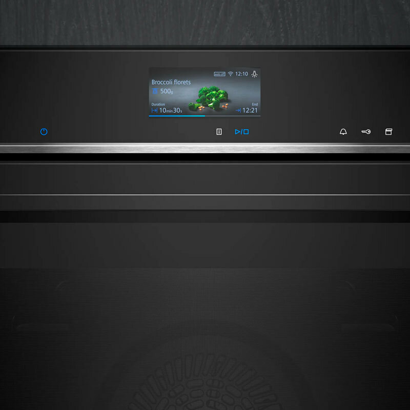*¡¡Asistente del horno con control por voz:!! ¿No sabes qué programa elegir para una receta? Simplemente, dile a tu horno qué plato quieres preparar mediante el control por voz de Amazon Alexa. También puedes hacerlo con la aplicación Home Connect. El asistente del horno te sugerirá los ajustes o programas adecuados y los activará automáticamente, ahorrándote tiempo y esfuerzo. Para disfrutar del asistente del horno, solo tienes que vincular el horno a tu cuenta de Home Connect. *¡¡Home connect control remoto:!! ¿Quieres descubrir una nueva forma de controlar tu horno? Solo tienes que vincular el horno a tu cuenta de Home Connect (www.home-connect.com) para controlarlo a distancia y usar servicios digitales, incluso mediante la voz, con Amazon Alexa. Puedes iniciar y finalizar los programas de cocción, cambiar los ajustes y gestionar tus favoritos sin pisar la cocina. Los ajustes se sincronizan entre la aplicación y el horno, y recibirás una notificación cuando termine la cocción. También puedes mantener actualizado el horno con las descargas de software. Descubre una forma más cómoda de cocinar. *¡¡Asistente de recetas cookcontrolPro:!! ¿Te preocupa que tus asados queden crudos o demasiado hechos? Con los programas automáticos de horneado y asado de tu horno, conseguirás siempre resultados perfectos. Solo tienes que seleccionar el plato en la pantalla TFT táctil y los sensores del horno se encargarán de todo. Incluso puedes elegir entre varias sugerencias que se adaptan a tus preferencias o al tiempo disponible. El horno aplica automáticamente los ajustes y funciones correctos y se apaga cuando el plato está listo, mientras tú haces otras cosas. *¡¡Aporte de vapor PulseSteam:!! Permite obtener asados jugosos por dentro y crujientes por fuera, consiguiendo siempre los mejores resultados. Es especialmente útil para carnes, pescados, repostería o para hornear pan, para conseguir una corteza crujiente y una miga esponjosa. Otro de los usos más habituales es el de regenerar alimentos previamente cocinados, consigue resultados como si estuviesen recién hechos. *¡¡Perfectcooking4D:!! Consigue resultados de cocción uniformes en cualquier parte del horno con perfectCooking 4D. Un innovador ventilador distribuye el calor de forma rápida y uniforme por el interior. Coloca las bandejas en cualquiera de las cuatro alturas y todos los platos quedarán perfectos. ¡Incluso puedes cocinar un menú de varios platos a la vez! *¡¡Precalentamiento rápido y coolstart:!! Descubre dos funciones inteligentes para ahorrar tiempo en la cocina. El precalentamiento rápido consigue que el horno alcance la temperatura deseada en un momento. Y con coolStart puedes cocinar los alimentos sin descongelarlos antes. ¡Tus platos estarán listos para servir más rápido que nunca! *¡¡Un mundo de recetas:!! No pierdas más el tiempo con libros de cocina o buscando recetas de Internet. Ahora puedes acceder a un mundo de deliciosas recetas con Home Connect y nuestras aplicaciones colaboradoras, como Foodfittery. Elige una receta y envía los ajustes a tu horno. Podrás preparar platos deliciosos, justo como a ti te gusta. Para disfrutar de esta función, solo tienes que vincular el horno a tu cuenta de Home Connect. *¡¡Asistencia en linea:!! ¿Tienes alguna duda sobre tu nuevo horno? Gracias a la aplicación Home Connect, podrás resolver cualquier duda de la forma más rápida y sencilla. Tienes acceso a un manual de usuario interactivo en el que encontrarás respuestas, consejos y trucos para sacar el máximo partido a tu horno. Si surge cualquier problema con el horno, utiliza el servicio de diagnóstico remoto para identificar la causa. Con tu permiso, el servicio de Atención al Cliente de Siemens accederá a distancia al aparato para localizar el problema y solucionarlo. Para disfrutar de todas estas ventajas, solo tienes que vincular el horno a tu cuenta de Home Connect. *¡¡Softmove:!! El mecanismo de amortiguación asegura que la puerta del horno se abra y cierre suavemente.