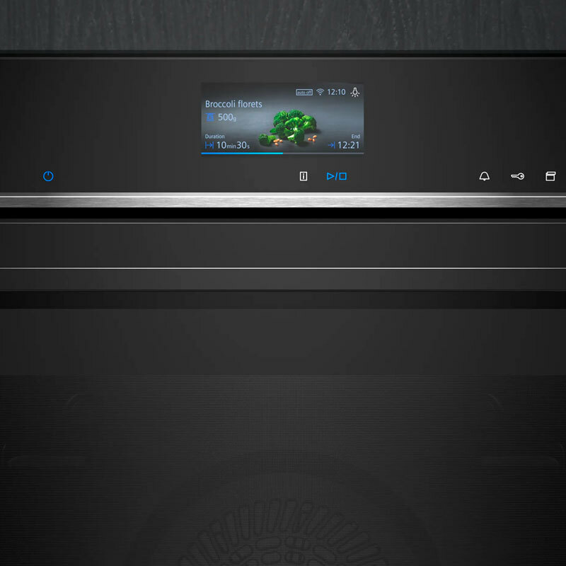 *¡¡Asistente del horno con control por voz:!! ¿No sabes qué programa elegir para una receta? Simplemente, dile a tu horno qué plato quieres preparar mediante el control por voz de Amazon Alexa. También puedes hacerlo con la aplicación Home Connect. El asistente del horno te sugerirá los ajustes o programas adecuados y los activará automáticamente, ahorrándote tiempo y esfuerzo. Para disfrutar del asistente del horno, solo tienes que vincular el horno a tu cuenta de Home Connect. *¡¡Home connect control remoto:!! ¿Quieres descubrir una nueva forma de controlar tu horno? Solo tienes que vincular el horno a tu cuenta de Home Connect (www.home-connect.com) para controlarlo a distancia y usar servicios digitales, incluso mediante la voz, con Amazon Alexa. Puedes iniciar y finalizar los programas de cocción, cambiar los ajustes y gestionar tus favoritos sin pisar la cocina. Los ajustes se sincronizan entre la aplicación y el horno, y recibirás una notificación cuando termine la cocción. También puedes mantener actualizado el horno con las descargas de software. Descubre una forma más cómoda de cocinar. *¡¡Asistente de recetas cookcontrolPro:!! ¿Te preocupa que tus asados queden crudos o demasiado hechos? Con los programas automáticos de horneado y asado de tu horno, conseguirás siempre resultados perfectos. Solo tienes que seleccionar el plato en la pantalla TFT táctil y los sensores del horno se encargarán de todo. Incluso puedes elegir entre varias sugerencias que se adaptan a tus preferencias o al tiempo disponible. El horno aplica automáticamente los ajustes y funciones correctos y se apaga cuando el plato está listo, mientras tú haces otras cosas. *¡¡Aporte de vapor PulseSteam:!! Permite obtener asados jugosos por dentro y crujientes por fuera, consiguiendo siempre los mejores resultados. Es especialmente útil para carnes, pescados, repostería o para hornear pan, para conseguir una corteza crujiente y una miga esponjosa. Otro de los usos más habituales es el de regenerar alimentos previamente cocinados, consigue resultados como si estuviesen recién hechos. *¡¡Perfectcooking4D:!! Consigue resultados de cocción uniformes en cualquier parte del horno con perfectCooking 4D. Un innovador ventilador distribuye el calor de forma rápida y uniforme por el interior. Coloca las bandejas en cualquiera de las cuatro alturas y todos los platos quedarán perfectos. ¡Incluso puedes cocinar un menú de varios platos a la vez! *¡¡Precalentamiento rápido y coolstart:!! Descubre dos funciones inteligentes para ahorrar tiempo en la cocina. El precalentamiento rápido consigue que el horno alcance la temperatura deseada en un momento. Y con coolStart puedes cocinar los alimentos sin descongelarlos antes. ¡Tus platos estarán listos para servir más rápido que nunca! *¡¡Un mundo de recetas:!! No pierdas más el tiempo con libros de cocina o buscando recetas de Internet. Ahora puedes acceder a un mundo de deliciosas recetas con Home Connect y nuestras aplicaciones colaboradoras, como Foodfittery. Elige una receta y envía los ajustes a tu horno. Podrás preparar platos deliciosos, justo como a ti te gusta. Para disfrutar de esta función, solo tienes que vincular el horno a tu cuenta de Home Connect. *¡¡Asistencia en linea:!! ¿Tienes alguna duda sobre tu nuevo horno? Gracias a la aplicación Home Connect, podrás resolver cualquier duda de la forma más rápida y sencilla. Tienes acceso a un manual de usuario interactivo en el que encontrarás respuestas, consejos y trucos para sacar el máximo partido a tu horno. Si surge cualquier problema con el horno, utiliza el servicio de diagnóstico remoto para identificar la causa. Con tu permiso, el servicio de Atención al Cliente de Siemens accederá a distancia al aparato para localizar el problema y solucionarlo. Para disfrutar de todas estas ventajas, solo tienes que vincular el horno a tu cuenta de Home Connect. *¡¡Softmove:!! El mecanismo de amortiguación asegura que la puerta del horno se abra y cierre suavemente.