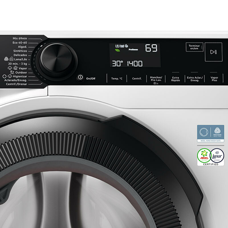 Mixload 69 Min, Eco 40-60, Algodón, Sintéticos, Delicado, Lana, 20 Min 3 Kg, Vapor, Exterior, Higiene, Aclarado, Centrifugado/Vaciado