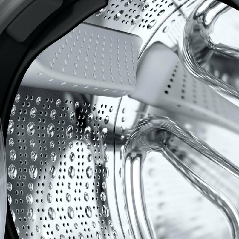 Reducción de ruido. Sistema automático de distribución de ropa: Sensor 3G y Paneles laterales antivibración. - Cubeta de detergente autolimpiante. - Protección múltiple de agua. - Bloqueo de seguridad para niños. - Posibilidad de instalación bajo encimera en muebles de altura 82 cm o más