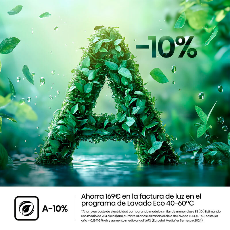 Lavado Rápido+ Reduce el tiempo y coste de lavado, ofreciendo múltiples programas de lavado rápido para satisfacer tus necesidades personalizadas. - Hygiene Guard Innovadora goma de puerta fabricada con agentes protectores que previenen la formación de moho y bacterias en la puerta. - Lavado Automático Sensores inteligentes ajustan automáticamente el programa de lavado y añade la cantidad adecuada de agua y detergente para una limpieza óptima y eficiente. - ConnectLife Permite programar a distancia, revisar el ahorro energético y recibir notificaciones directamente en el teléfono. - Pure Jet Aumenta el rendimiento de lavado con un potente chorro de agua facilitando así la eliminación de las manchas más difíciles. - Tecnología Inverter Asegura larga durabilidad y mayor ahorro energético con un funcionamiento que minimiza ruido y vibraciones. - Gran Pantalla Led Mejora la usabilidad, ofreciendo un control claro e intuitivo al alcance de tu mano. Programa tu ciclo de lavado y sigue su progreso.
