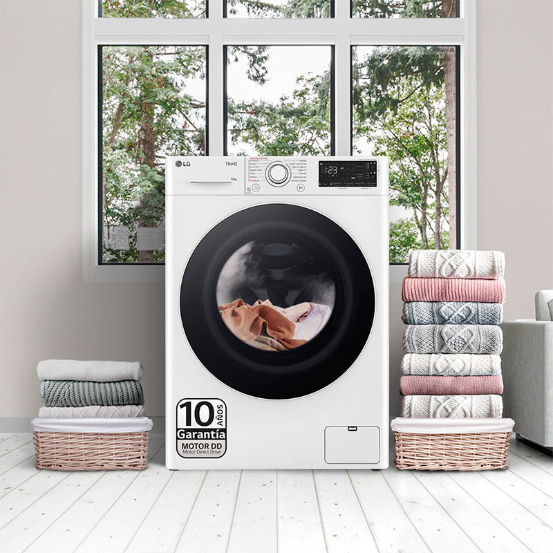 *¡¡AI Direct Drive:!! A través de un sistema de big data, el motor AI Direct Drive™ detecta las características del tejido introducido en la lavadora y establece los movimientos óptimos del tambor para un mayor cuidado de tu ropa. El motor AI DD™ no sólo detecta el peso de las prendas, sino que también detecta las características tejido a través de la dureza del mismo y elige los movimientos óptimos para un mayor cuidado de las prendas por sí mismo. *¡¡Autodosificador de detergente y suavizante:!! Ahorra detergente ya que solamente dosifica la cantidad necesaria. *¡¡ThinQ™ con wifi:!! Conectividad wifi a través de la app ThinQ™, compatible con altavoces inteligentes. *¡¡Turbo Wash 360º:!! Lavado en 39 minutos con media carga. Ahorrando hasta un 28% de electricidad. Con el sistema de túnel de lavado TurboWash 360º. *¡¡Puerta de cristal templado y bateadores de acero inoxidable:!! Cristal antiarañazos. Bateadores de acero inoxidable: mayor higiene que los de plástico, 99% anti bacterias, y mayor durabilidad y cuidado de las prendas. *¡¡10 Años de garantia en el motor:!! Motor Direct Drive de alta tecnología directamente conectado al tambor de la lavadora, sin necesidad de correas o poleas. Altamente eficiente y duradero, silencioso, con menos vibraciones y un mejor rendimiento en la limpieza y cuidado de la ropa.