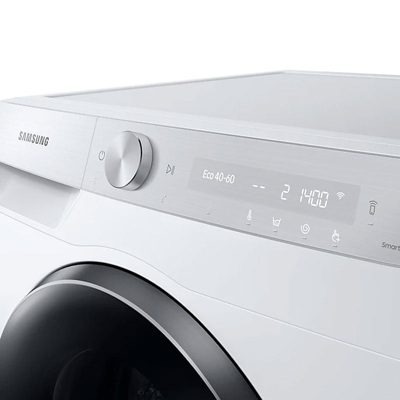 *Tecnología QuickDrive: QuickDriveTM reduce el tiempo de lavado hasta en un 50% y el consumo energético hasta en un 20% manteniendo unos resultados excelentes de lavado. Su innovador tambor contiene una placa trasera que rota de manera independiente y en sentido contrario al tambor principal. De esta manera se genera un mayor movimiento dentro del tambor: las prendas no solo suben y bajan como en una lavadora convencional sino también de delante a atrás consiguiendo resultados de lavado excelentes hasta en la mitad de tiempo y protegiendo los tejidos. *Tecnología EcoBubble: Excelentes resultados en agua fría. El agua con detergente se mezcla con aire antes de entrar en el tambor, generando una capa de burbujas que penetra más rápido en las prendas y las protege de la fricción. *Inteligencia artificial: Lava la ropa de manera más fácil y efectiva. La nueva función de las lavadoras Samsung recuerda tus hábitos, te sugiere programas y te muestra información recomendada. A través de la app SmartThingsTM recibirás consejos sobre programas y solución de problemas. Y, además, selecciona el tipo de lavado perfecto para cada ocasión. Lava la ropa de manera más fácil y efectiva. La nueva función de las lavadoras Samsung recuerda tus hábitos, te sugiere programas y te muestra información recomendada. *AI Wash Consigue los mejores resultados con menos agua y esfuerzo. AI Wash usa 4 tipos de sensores para calcular el peso de la colada y utilizar la cantidad adecuada de agua y detergente. Un sensor además detecta los niveles de suciedad y, si fuese necesario, añadiría más detergente o tiempo de lavado. *AddWash: ¿Te has encontrado un calcetín en el fondo del cesto cuando ya tenías puesta la lavadora? ¿Te gustaría añadir un extra de suavizante al final del ciclo de aclarado para potenciar la fragancia? Con AddWash™ es posible en cualquier momento del ciclo y sin vaciar el agua del tambor. *Sistema antivibración VRT Plus Pon lavadoras en cualquier momento sin molestar a nadie, incluso de noche. La innovadora tecnología VRT Plus™ reduce el ruido y la vibración durante el lavado. El sensor de Vibración Tridimensional mantiene el tambor perfectamente balanceado, incluso a altas velocidades *lavado de tambor+: Mantén la puerta y el interior de tu lavadora limpios. El programa de Lavado de Tambor+ elimina la suciedad y el 99,9% de las bacterias causantes del mal olor, sin necesidad de detergentes caros. Además, el agua a presión y un centrifugado rápido eliminan la suciedad alrededor de la junta de la puerta. Si eres de los olvidadizos o no estás acostumbrado a utilizar este programa, las nuevas lavadoras Samsung te notifican cuándo es necesaria una limpieza.