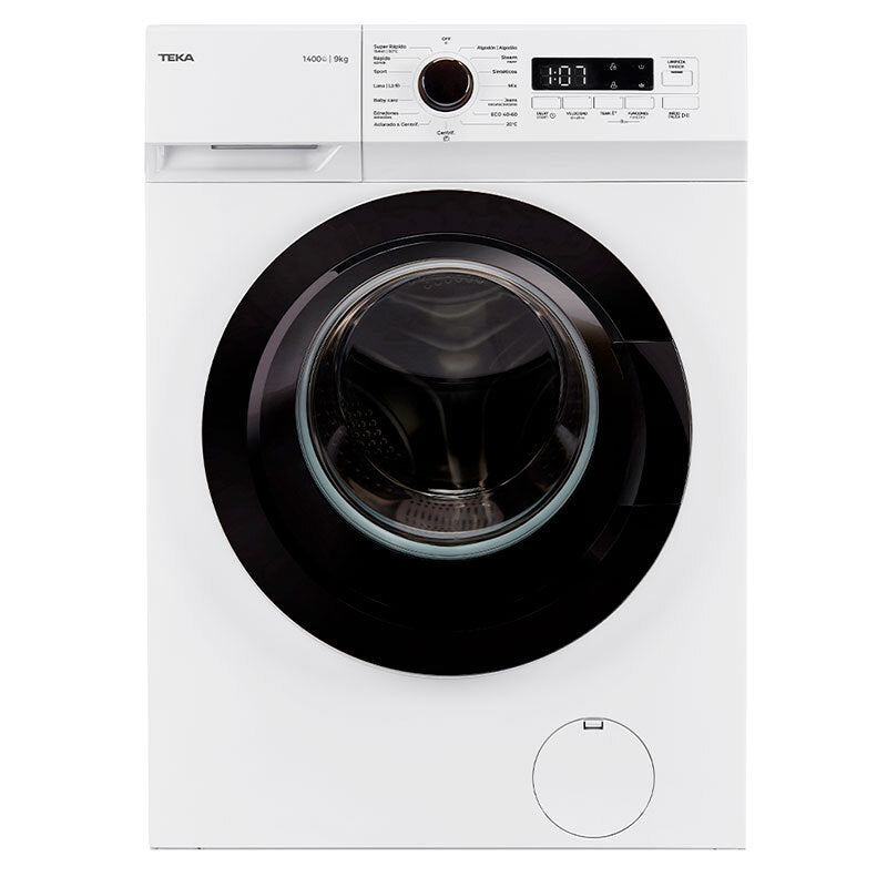 Sistema de control de desequilibrios Regulación automática del consumo de agua Ojo de buey de cristal de 28,8 cm de diámetro Indicadores: on-off, tiempo restante, limpieza de tambor Motor de alto rendimiento Patas regulables en altura