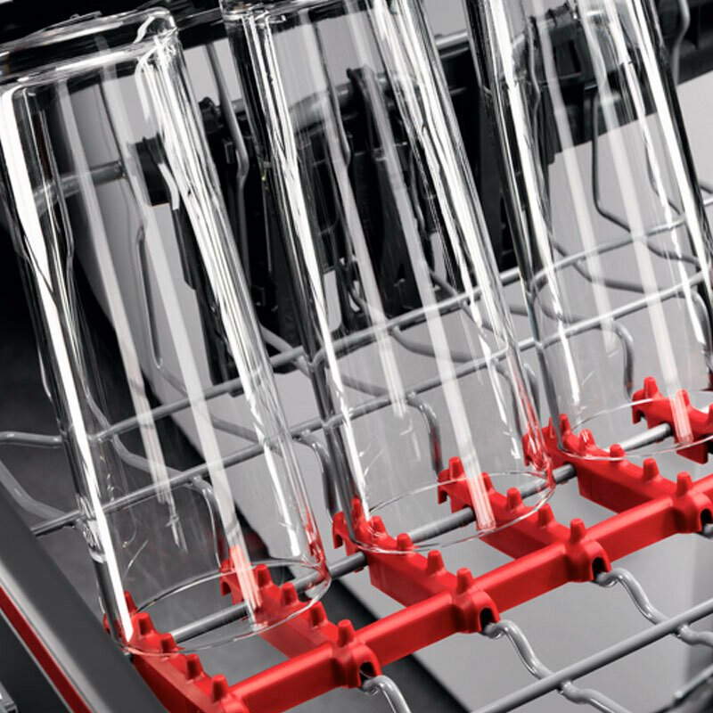 · Cesto superior con Tiras de púas de goma SoftSpikes para asentar con seguridad la cristalería en el lavavajillas, Estantes taza plegable, Tirador de plástico a color · Cesto inferior con 2 soportes plegables para platos, Asa de plástico a color:
