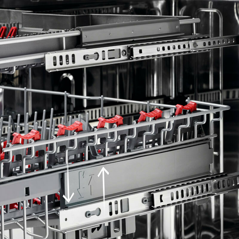 ["Cesto superior regulable en altura a plena carga - Cesto superior: 2 soportes abatibles","2 soportes abatibles para vasos","Estantes taza plegable - Cesto inferior: 2 estantes plegables - Bandeja para cubiertos: Estante para cuchillos","Bandeja MaxiFlex"]