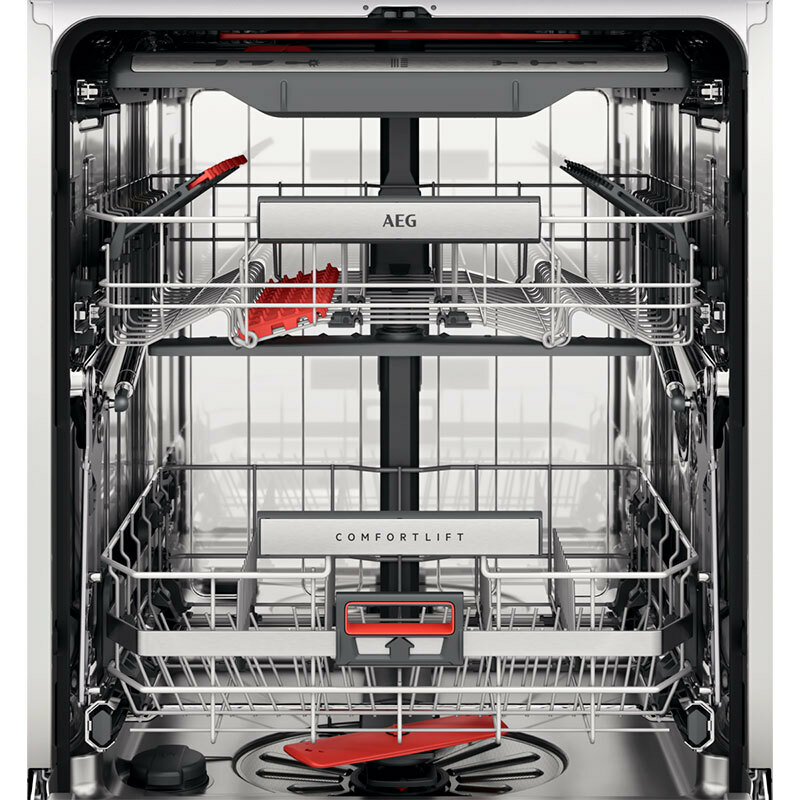["Luz interior: la visibilidad óptima en el lavavajillas - Cesto superior regulable en altura a plena carga - Cesto superior: Pinzas de goma «SoftGrips» para sujetar firmemente las copas de tallo alto","2 soportes abatibles","2 soportes abatibles para vasos","Tiras de púas de goma «SoftSpikes» para asentar con seguridad la cristalería en el lavavajillas","Estantes taza plegable","Asa AEG de acero inoxdibale","Carriles premium - Cesto inferior: 4 soportes ComfortLift® plegables","Tirador de Acero Inoxidable - Bandeja para cubiertos: Estante para cuchillos","Bandeja MaxiFlex","Raíles premium","Separadores extraíbles"]