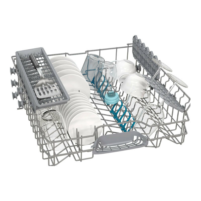 Cestillo Dúo para cubiertos Cesta superior regulable en altura Cesta inferior con sistema de extracción de fácil deslizamiento y freno de seguridad Varillas abatibles cesta superior/inferior: 0/2
