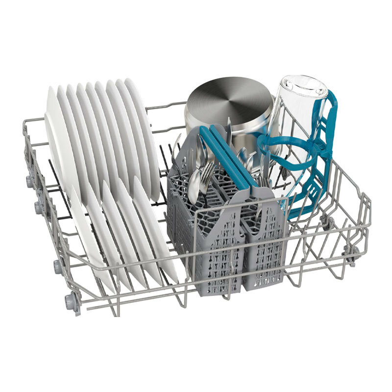 Cestillo Dúo para cubiertos Cesta superior regulable en altura Cesta inferior con sistema de extracción de fácil deslizamiento y freno de seguridad Varillas abatibles cesta superior/inferior: 0/2