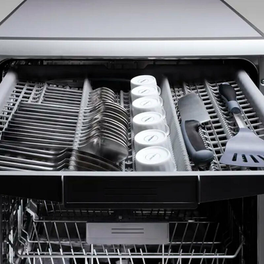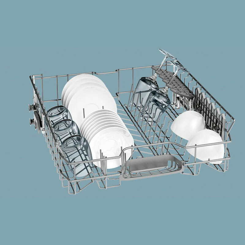 Cesta superior RackMatic 3 alturas. Bandeja dosificadora de detergente. Varillas abatibles cesta superior/inferior: 0/2. Tercera bandeja para cubiertos