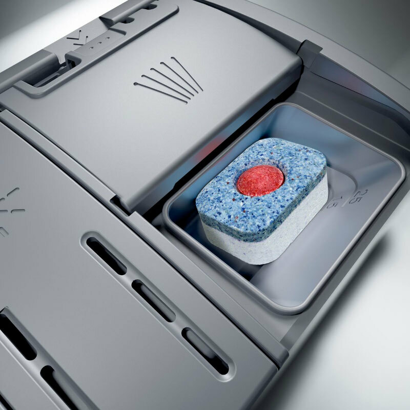 Intercambiador de calor + asistente de secado Bandeja dosificadora de detergentes combinados Información de tiempo restante, reposición de sal y abrillantador en el display Señal acústica de fin de programa