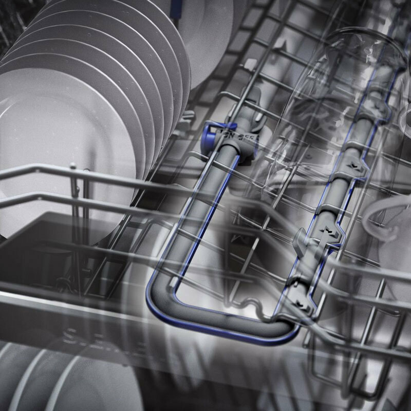 Zona hidráulica glassZone: tus mejores copas tienen un lugar y un cuidado especial - 3ª bandeja varioDrawer - Cesta superior rackMatic regulable en 3 alturas - Sistema de deslizamiento avanzado en cesta superior - Freno en cesta inferior evitando posibles descarrilamientos - Varillas abatibles - Accesorio para copas incluido