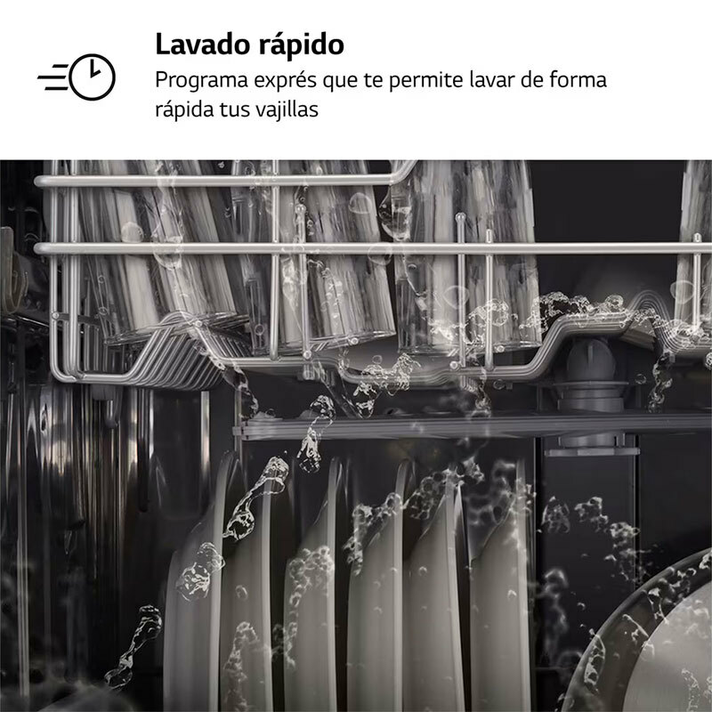 *¡¡Diseño elegante.!! Acabado premium y elegante ideal para tu cocina. *¡¡Soluciones en un click:!! Resuleve las pequeñas incidencias de manera rápida a través la app LG ThinQ. *¡¡Elegante por fuera y por dentro:!! Interior fabricado totalmente en acero inoxidable. Duradero y de fácil mantenimiento *¡¡Distintas opciones para colocar tu vajilla:!! Aprovecha el espacio de forma eficiente, moviendo la bandeja superior hacia arriba o hacia abajo para que quepan incluso ollas y sartenes grandes, ofreciéndote así distintas opciones para colocar tu vajilla. *¡¡Cuba interior de acero inoxidable:!! Mantén limpio tu lavavajillas con el interior de la cuba en acero inoxidable, lo que hace que sea más higiénico y duradero que los de plástico.