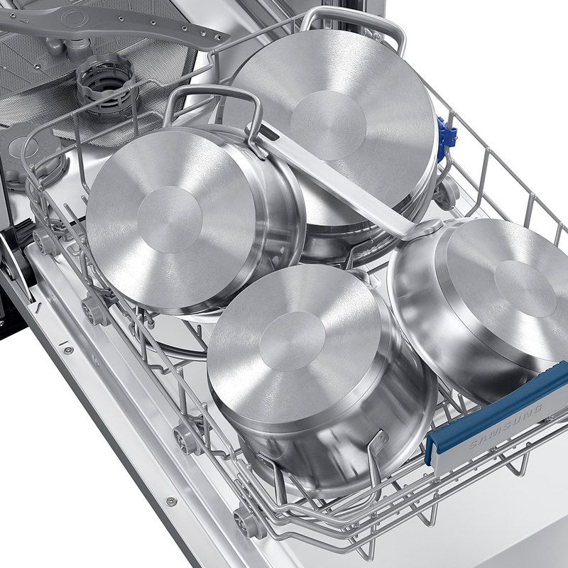 Bandeja superior: Tirador en cesta - Estante plegables - Altura ajustable Bandeja inferior: Tirador en cesta - Dientes plegables Cesto para cubiertos: Bandeja superior para cubiertos - Cesto para cubiertos