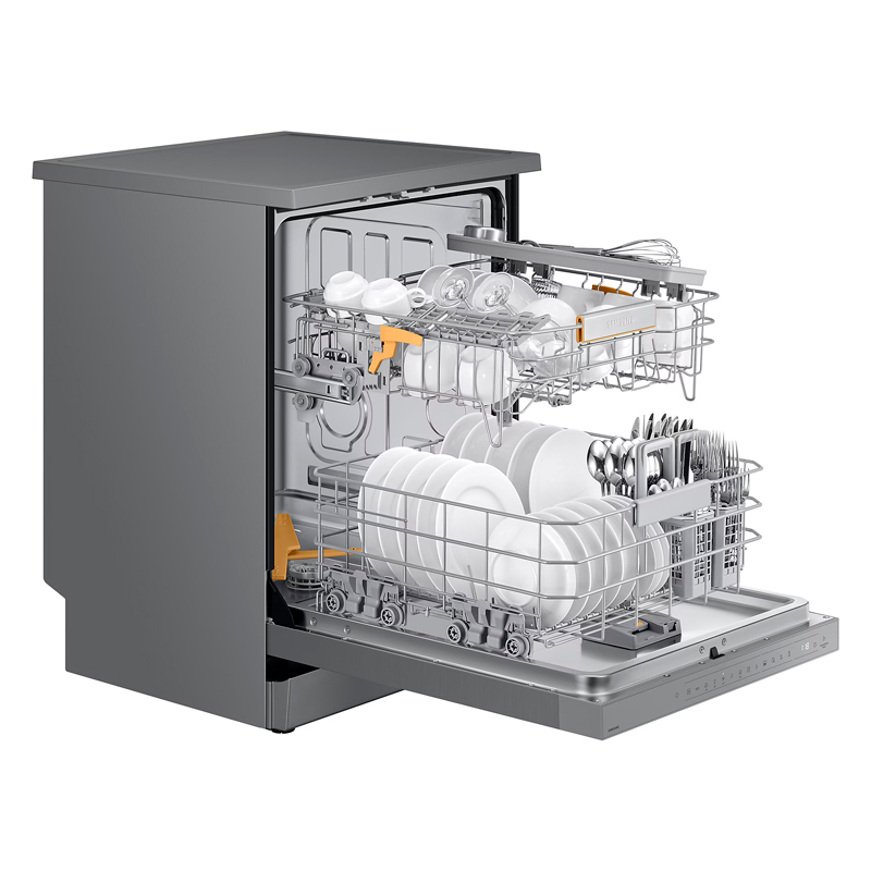 *¡¡WaterJet Clean:!! Consigue mejores resultados con nuestro potente sistema WaterJet Clean™. Sus brazos de lavado duales rotativos proporcionan un lavado más intensivo desde cada ángulo, llevando el agua a presión hasta el último rincón. Así, se limpian los platos, sartenes y ollas más sucios rápidamente y a conciencia. *¡¡WiFi integrado:!! Optimiza el uso del lavavajillas para adaptarlo a tu estilo de vida. La aplicación SmartThings te permite supervisar y controlar el lavavajillas a distancia desde un smartphone. *¡¡SmartThings:!! Mejora tu forma de usar el lavavajillas. La aplicación SmartThings te permite controlar a distancia los ajustes y ponerlo en marcha en periodos de bajo coste eléctrico o baja intensidad de carbono. También te sugiere los ciclos más eficaces en función de cómo hayas cocinado, y te ayuda a reducir el consumo de energía, gestionar los consumibles y solucionar los errores. *¡¡Programación optima:!! Lava de forma económica y reduce la huella de carbono de tu hogar, automáticamente. Cuando se activa la Programación Óptima en la aplicación SmartThings, puedes iniciar el lavado en las horas de menor consumo, cuando el coste de la electricidad es bajo. También puedes elegir iniciarlo en periodos de baja intensidad de carbono. *¡¡SmartThins AI energy mode:!! Controla el consumo de energía de tu lavavajillas. Mediante inteligencia artificial, el modo AI Energy Mode supervisa el consumo de energía y predice el uso continuado. Si la factura mensual de electricidad puede superar tu objetivo, puedes activar el modo de ahorro de energía, para que el lavavajillas consuma hasta un 23% menos de energía *¡¡Descarga de programas:!! Personaliza tu experiencia de limpieza cuando quieras. La opción de descarga de programas te permite elegir entre 4 programas especializados adicionales y descargar al instante el que desees mediante la aplicación SmartThings en un smartphone. *¡¡Extra Silencioso:!! Reduce el ruido en tu hogar. El lavavajillas funciona de forma más suave y silenciosa gracias a al Motor Digital Inverter, que reduce la fricción. Además, cuenta con un programa extrasilencioso que lava un poco más despacio pero reduce el ruido en 2 decibelios respecto al programa ECO *¡¡Sistema AutoOpen:!! Consigue los platos más relucientes gracias a la función de apertura automática de la puerta. Una vez que los procesos de aclarado y secado han sido completados, la puerta se abre automáticamente 10 cm para permitir que salga el vapor. Esto hace que el secado sea mejor y más rápido que con métodos convencionales*, especialmente para los objetos pequeños. *¡¡Carga flexible:!! Coloca platos, vasos y copas de distintos tamaños y formas. La bandeja central contiene separadores que se pueden ajustar en 3 configuraciones diferentes mediante una palanca y también una estructura para vasos. La bandeja trasera es alta y tiene separadores plegables en la parte delantera para retener de manera segura y estable platos y cuencos y separadores que se pliegan por completo en la parte trasera para acomodar objetos de mayor tamaño. *¡¡Aqua stop:!! Mantente a salvo de daños inesperados por agua con la función de seguridad Aqua Stop. Corta el suministro de agua y la conexión eléctrica para detener el funcionamiento del lavavajillas si detecta pequeñas trazas de agua. Así te protege de descargas eléctricas y daños por agua potencialmente costosos.