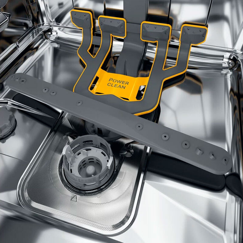 MaxiSpace Tub: 10% de espacio extra para colocar todo lo que necesitas. Mismas dimensiones en el exterior, nuevas posibilidades en el interior, gracias a la versátil MaxiSpace Tub. La nueva cubeta ofrece +10 % de espacio adicional para cargar incluso platos de pizza de hasta 32 cm en la cesta inferior y platos de postre de hasta 19 cm en la central al mismo tiempo. Una nueva oportunidad de vaciar el fregadero de una sola vez, evitando lavados extra y de manos y consumos extra PowerClean Pro: Disfrute de resultados de limpieza excepcionales sin necesidad de fregar o prelavar a mano. Gracias a los potentes chorros de agua de PowerClean Pro, incluso la suciedad más difícil se puede eliminar de todos los rincones sin prelavado NaturalDry: Extraordinarios resultados de secado y gran ahorro energético. NaturalDry es un sistema automático de apertura de puertas diseñado para un secado uniforme de los platos gracias al flujo de aire natural que ingresa al lavavajillas al final del ciclo. Garantiza resultados sobresalientes y un gran ahorro de energía: hasta un 70 % mejores resultados y hasta un 15 % menos de consumo de energía 6TH SENSE Technology: La inteligencia detrás de resultados sobresalientes y ahorro de recursos. Gracias a la Tecnología 6TH SENSE, el lavavajillas detecta el tamaño de la carga y el nivel de suciedad, y adapta de forma inteligente la configuración del ciclo y del programa para garantizar un importante ahorro de recursos Flexible 3rd Rack: Su experiencia de carga será siempre sin esfuerzo. Todo el espacio para sus cubiertos en una configuración flexible que le permite colocar artículos más altos en el estante del medio gracias a un tercer estante modular que se puede reducir