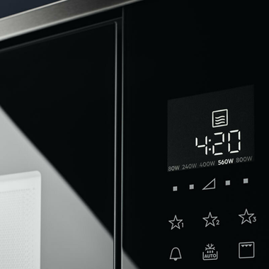 ¡¡TouchOpen, apertura de la puerta táctil:!! Los microondas Electrolux con función TouchOpen montan un mecanismo de apertura táctil para acceder al interior con máxima facilidad. Con solo tocar el botón de apertura se abre la puerta cómoda y suavemente. ¡¡Apertura suave y automática:!! El diseño TouchOpen te da acceso fácil a los alimentos del interior del microondas. La puerta se abre suave y automáticamente con solo tocar un botón gracias al mecanismo de apertura especialmente diseñado para ello. Acceso rápido en un solo movimiento. ¡¡Función grill, versatilidad de cocción:!! Tostadas de mozzarella, pollo al grill y muchas cosas más. Aprovecha las ventajas que el potente grill de este microondas te ofrece y desarrolla todas tus habilidades culinarias y aprende nuevos trucos y posibilidades. ¡¡El microondas, una gran solución para toda cocina:!! Un microondas te ofrece acceso directo a alimentos cocinados de forma rápida y deliciosa. Con solo pulsar un botón puedes derretir el chocolate, descongelar tu guiso favorito o recalentar las sobras rápidamente. ¡¡Favoritos, guarda tus ajustes de cocción preferidos:!! Guarda tus ajustes favoritos y después de crear un programa, toca el icono de estrella en la pantalla para activarlo. Ya no necesitas acordarte de ningún ajuste específico. Todo arreglado con un solo toque. ¡¡Plato giratorio retornable, todo comodidad:!! Hemos diseñado este microondas para el plato siempre retorne a la posición inicial. Cuando termina la cocción el plato retorna a la posición que inicialmente tenía al introducir los alimentos en el microondas. Ideal para asir las tazas una vez terminada la cocción.
