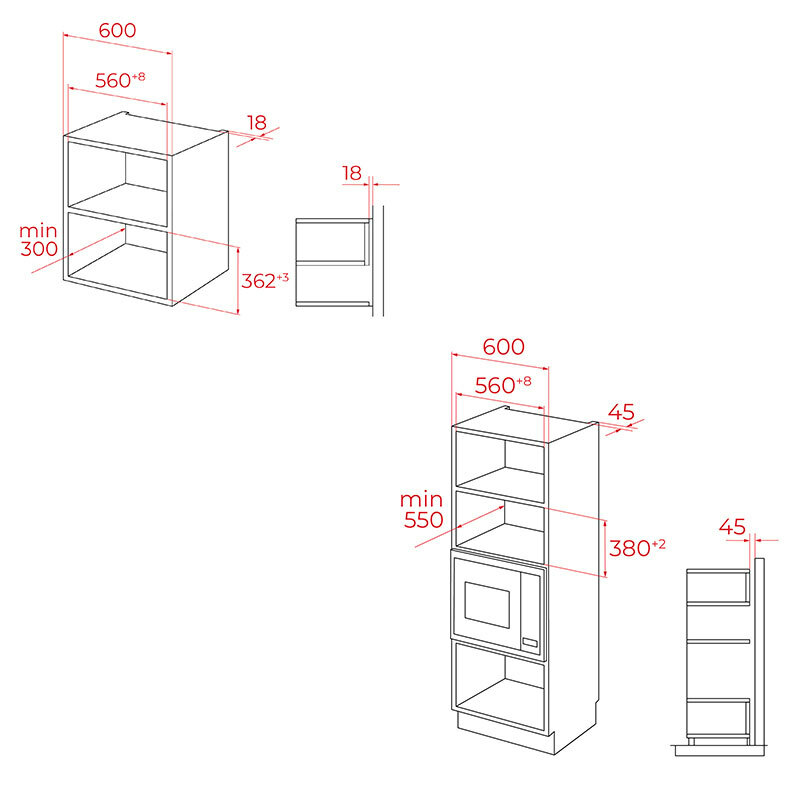 Dimensiones encastre mueble alto