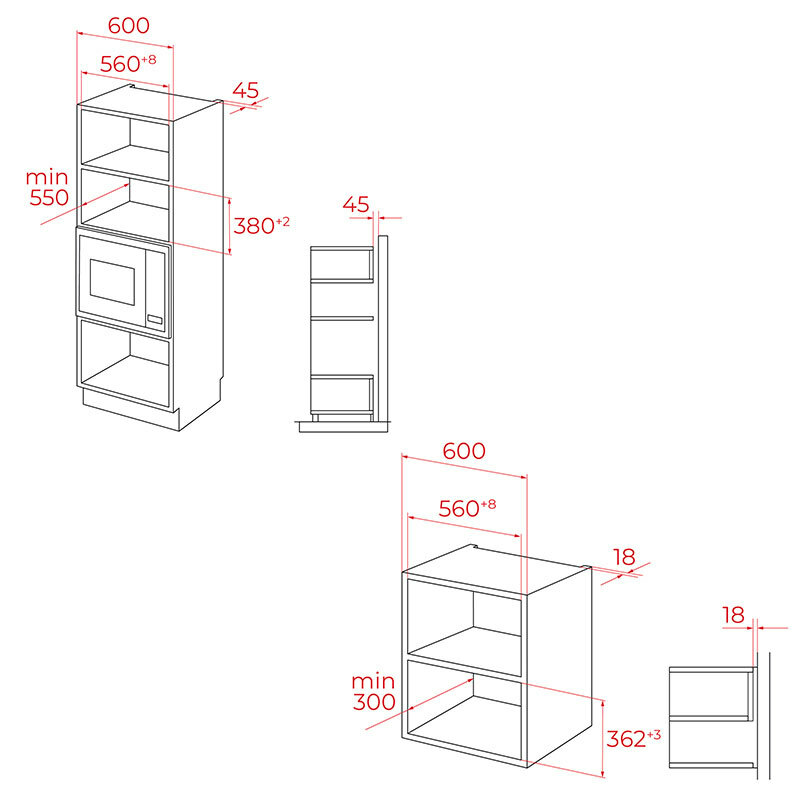 Mandos de acero inoxidable con frente negro Panel de mandos de cristal Panel de mandos mecánico 5 Niveles de potencia, 800 W Capacidad: 20 litros Interior en acero inoxidable