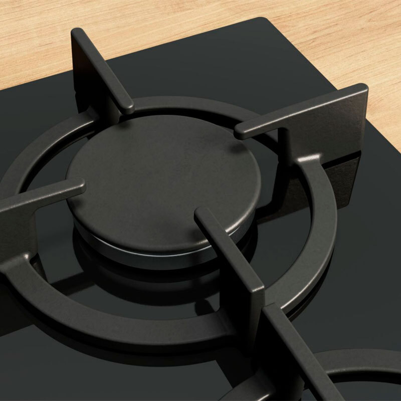 Parrillas lavables en el lavavajillas para una mayor comodidad - Posibilidad de instalación sobre encimera o enrasada - Parrillas de hierro fundido individuales - Compatible con: gas licuado 50 mbares - gas licuado G30 37 mbares (PL) - gas licuado G30,31 28-30/37mba - gas natural H/E 20mbar,E+ 20/25mba - gas natural L/LL G25/20mbar (DE) - gas natural H 25 mbar (HU) - gas natural L 25 mbar (NL) - Inyectores opcionales para gas butano incluidos. Los inyectores para otro tipo de gas se pueden adquirir a través de nuestro servicio técnico. Por favor, para el cambio de los mismos, póngase en contacto con un técnico - Encimera de espesor mínimo: 20 mm - Si se opta por una instalación enrasada, el grosor mínimo de encimera es 30 mm - Made in Europe
