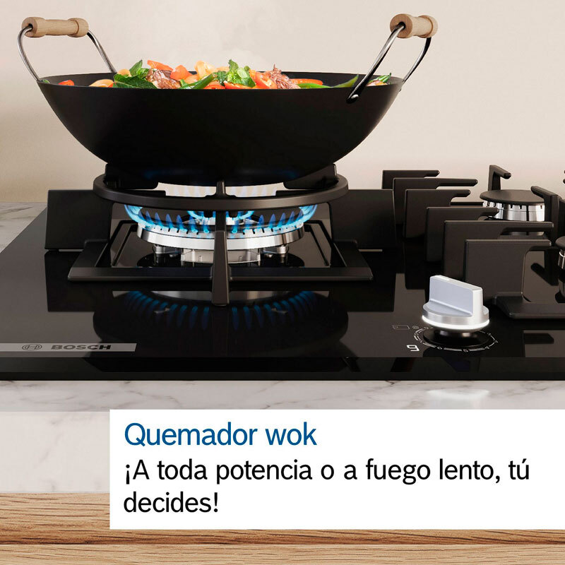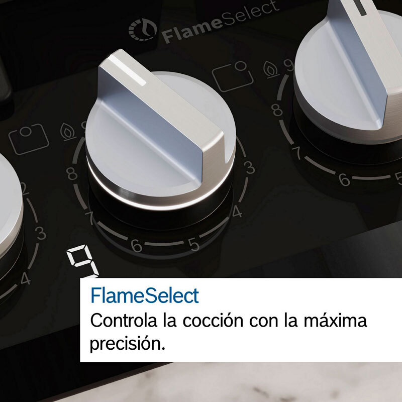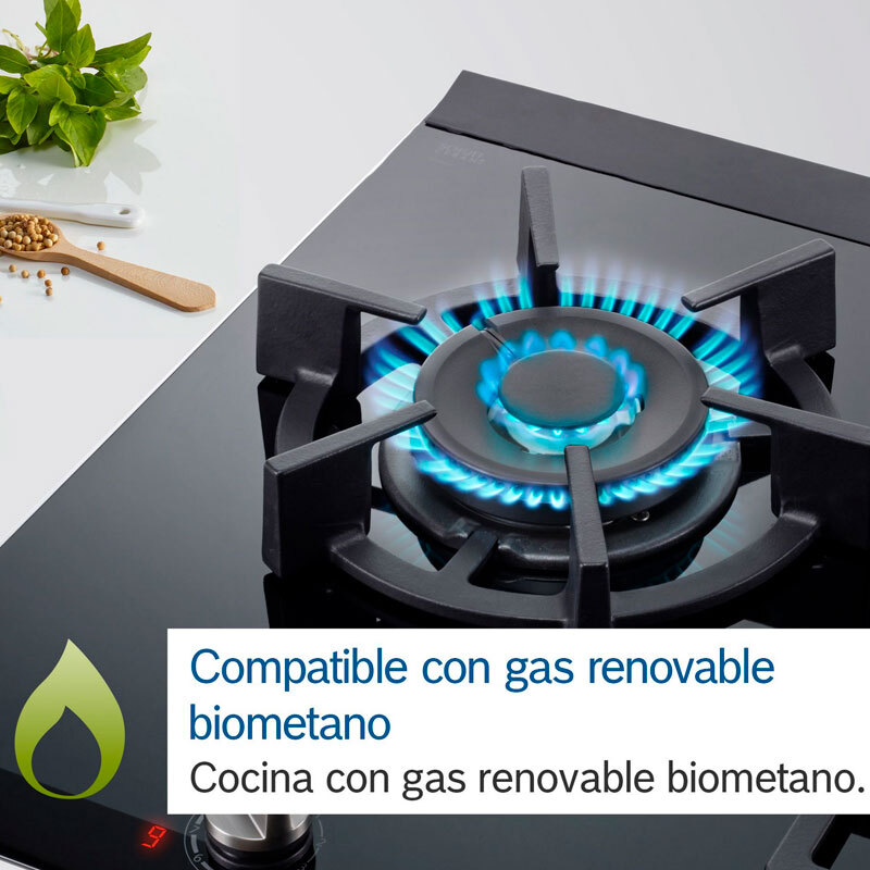 FlameSelect Controla la cocción con la máxima precisión. Las placas de gas destacan por su gran versatilidad a la hora de ajustar la potencia de cocción. Aunque no siempre es fácil seleccionar la intensidad exacta de la llama que necesitas. Con FlameSelect, puedes elegir con precisión la intensidad de la llama entre nueve niveles para obtener siempre resultados perfectos. (El diseño del producto puede diferir de la imagen) - Limpieza fácil Limpiar tu placa de gas nunca ha sido tan fácil. Las cocinas de gas tienen fama de ser difíciles de limpiar. Las parrillas pueden resultar pesadas y tener recovecos que complican esta tarea. Pero no te preocupes, porque eso era antes. Nuestras placas de gas están diseñadas para facilitarte las cosas. Tienen un diseño mejorado de la superficie, mandos extraíbles y parrillas que puedes limpiar en el lavavajillas. De este modo, la cocina se recoge más rápido y tienes más tiempo para ti. ¿Verdad que ahora ves las cocinas de gas de otra manera? - Parrillas aptas lavavajillas Limpiar tu placa de gas es más fácil que nunca. Las placas de gas Bosch tienen parrillas de alta calidad que además son muy fáciles de limpiar. Gracias a su recubrimiento mejorado, puedes ponerlas en el lavavajillas sin temor a que se oxiden. ¡Se acabó tener que frotar! - Parrillas individuales hierro ¡Las parrillas que te hacen la vida más fácil! Limpiar las parrillas de la cocina de gas puede resultar pesado y complicado. O no... Las placas de gas Bosch tienen parrillas individuales de hierro fundido para cada quemador, ofreciendo una gran estabilidad y firmeza. Además, estas parrillas son más ligeras, fáciles de retirar y volver a colocar, y caben perfectamente en el fregadero para limpiarlas. Así también puedes secarlas cómodamente sin ocupar toda la encimera. Se acabaron los esfuerzos a la hora de limpiar la parrilla de la cocina de gas. ¡Disfruta de tus recetas sin complicaciones! - GasStop Máxima seguridad en tu cocina. En la cocina, la seguridad es lo primero. Por eso, nuestras placas de gas incluyen el sistema GasStop. Cuando se apaga la llama de un quemador, se corta automáticamente el suministro de gas. Eso previene accidentes si alguno de los fuegos se apaga inadvertidamente. También es una garantía adicional de que nunca te dejarás el gas de la cocina abierto por accidente. Mientras te centras en cocinar un menú de cinco estrellas, nosotros nos preocupamos de la seguridad. ¡Disfruta de tu cocina de gas con la máxima tranquilidad! - Quemador wok ¡A toda potencia o a fuego lento, tú decides! Al cocinar en una placa de gas, quieres tener un control total de la llama en todo momento. Con ese propósito hemos diseñado nuestro quemador wok. Te permite cambiar al instante entre máxima potencia y fuego suave, en función de lo que necesites en cada momento. De esta manera, puedes hervir agua rápidamente y luego dejar que tu receta preferida se acabe de hacer a fuego lento. ¡Toma el control de la llama con el quemador wok de nuestras placas de gas! - Mandos extraíbles ¡Con los mandos extraíbles, limpiar cuesta menos! Se acabaron las complicaciones a la hora de limpiar los fogones. Nuestras placas de gas tienen mandos extraíbles para facilitarte la tarea. Puedes retirar los mandos de forma sencilla y segura para limpiarlos cómodamente. Así podrás eliminar la suciedad que se acumula tanto en los mandos como en el espacio entre ellos. Luego solo tienes que volver a colocar fácilmente los mandos en su sitio y disfrutar de una placa impecable. - Preparada para biometano ¡Placas aptas para cocinar de forma sostenible! ¿Te preocupa el impacto para el medioambiente de cocinar con gas? En ese caso, te encantarán nuestras placas de gas preparadas para biometano. Permiten cocinar con un gas renovable de origen natural que cuida el medioambiente. Se trata de una alternativa cada vez más extendida al gas procedente de combustibles fósiles. Además, la producción de biogás contribuye a la economía circular, al transformar residuos orgánicos en energía. - Sustituye a PPC6A6B20