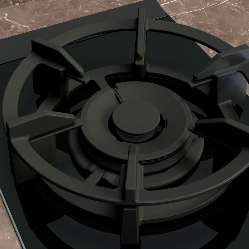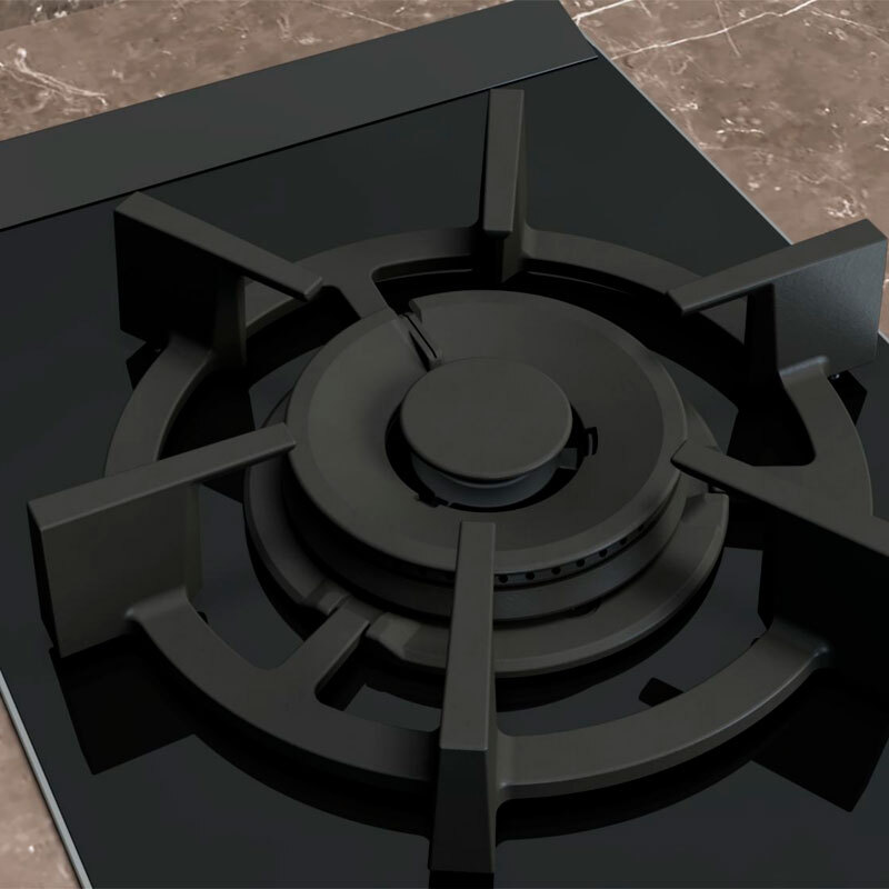 biselado frontal y perfiles laterales, perfiles de aluminio - Parrillas de hierro fundido de máxima estabilidad - Parrillas lavables en el lavavajillas para una mayor comodidad - Compatible con: gas licuado 50 mbares - gas licuado G30 37 mbares (PL) - gas licuado G30,31 28-30/37mba - gas natural H/E 20mbar,E+ 20/25mba - gas natural L/LL G25/20mbar (DE) - gas natural H 25 mbar (HU) - gas natural L 25 mbar (NL)